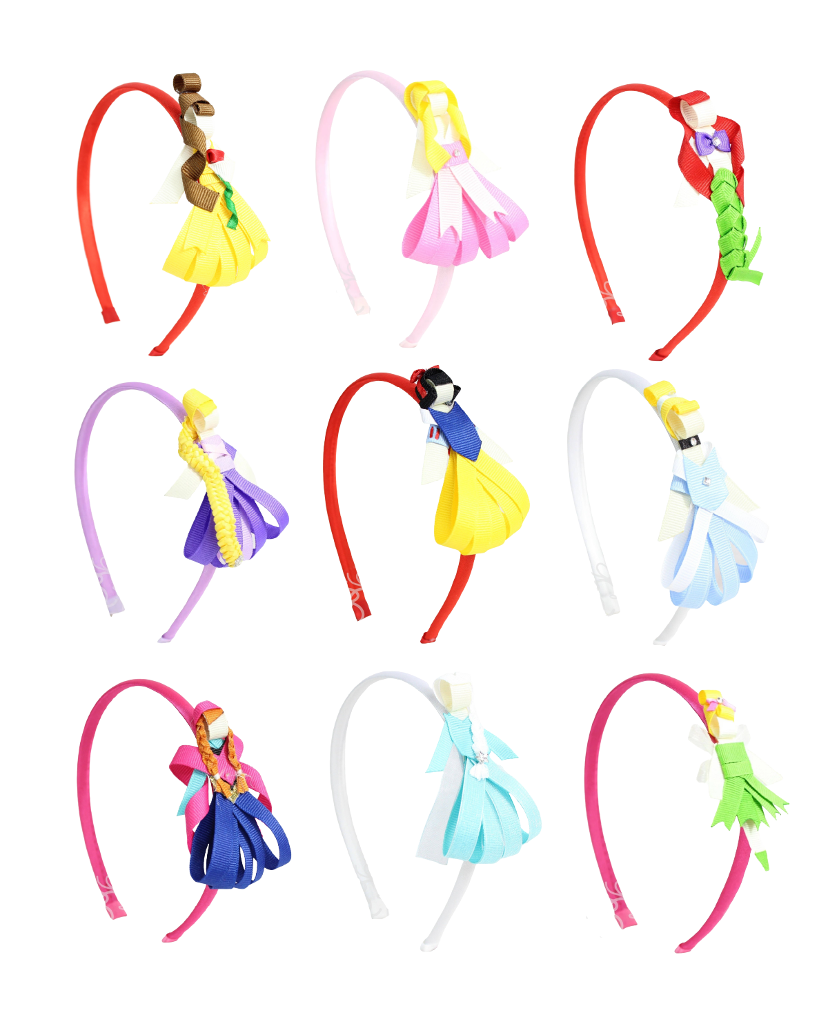 Add a little hair magic with these adorable princess headband. Made with grosgrain ribbon and will delight any girl. 9 unique styles to choose.