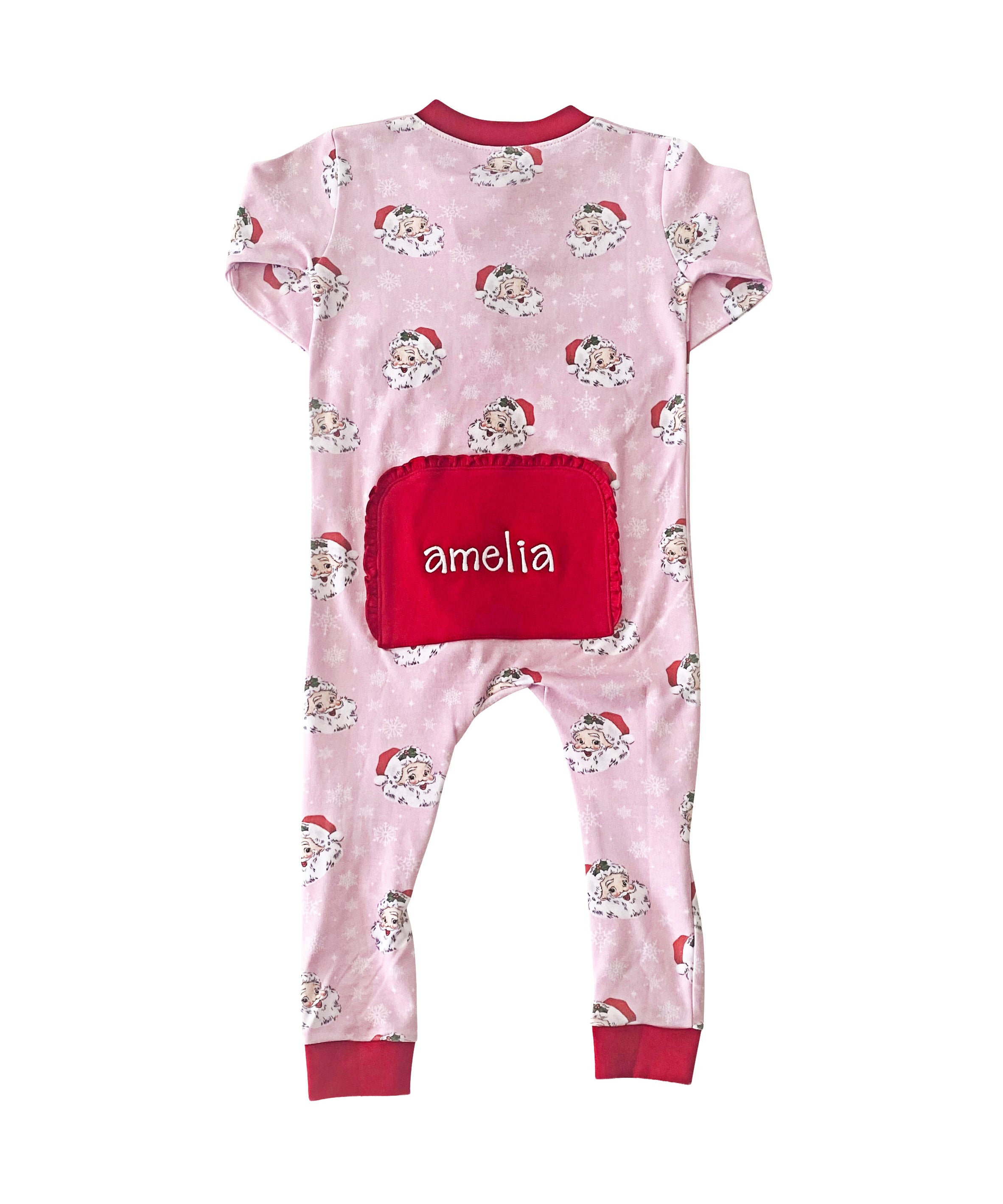 Our best selling classic Christmas print on the softest pink pima cotton handmade in Peru. This Vintage Santa print is sure to bring the most comfortable night sleep before opening presents on Christmas morning. Sibling sets available for tons of fun this Christmas. Even cuter when you add a monogram on back pocket of these Christmas pajamas!