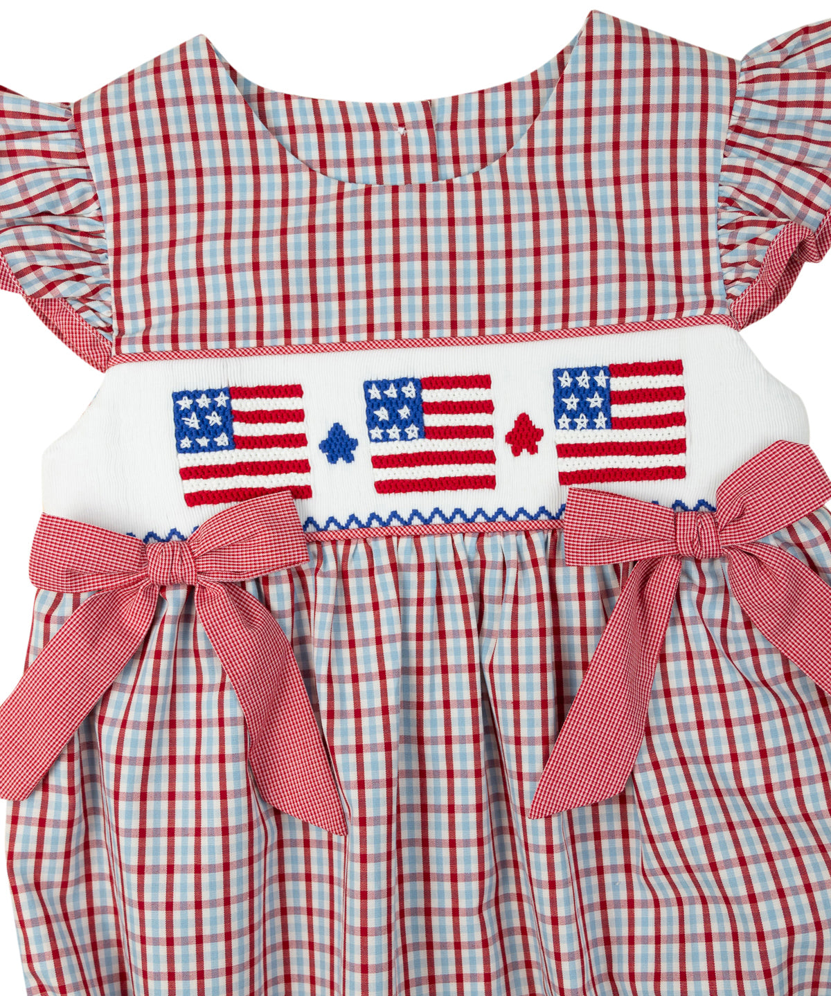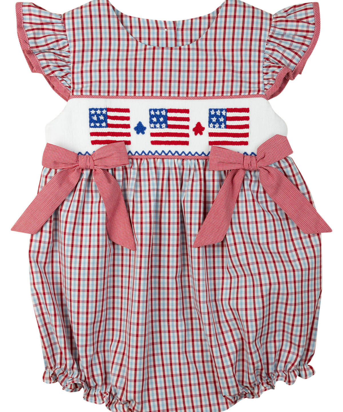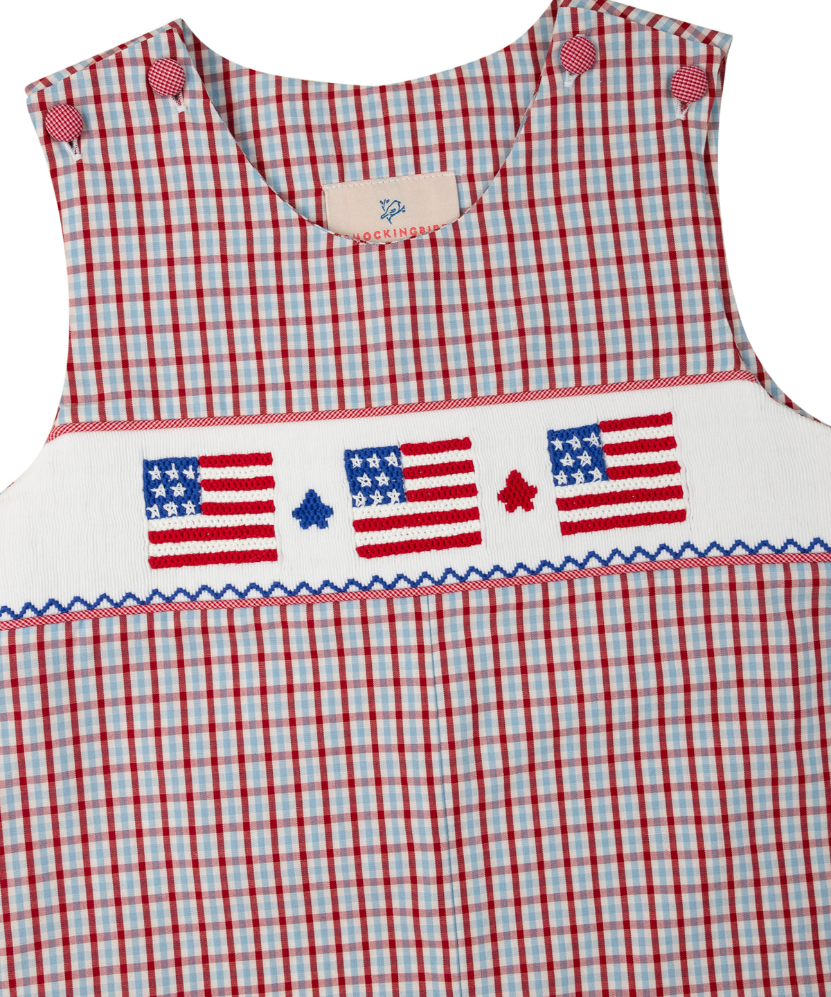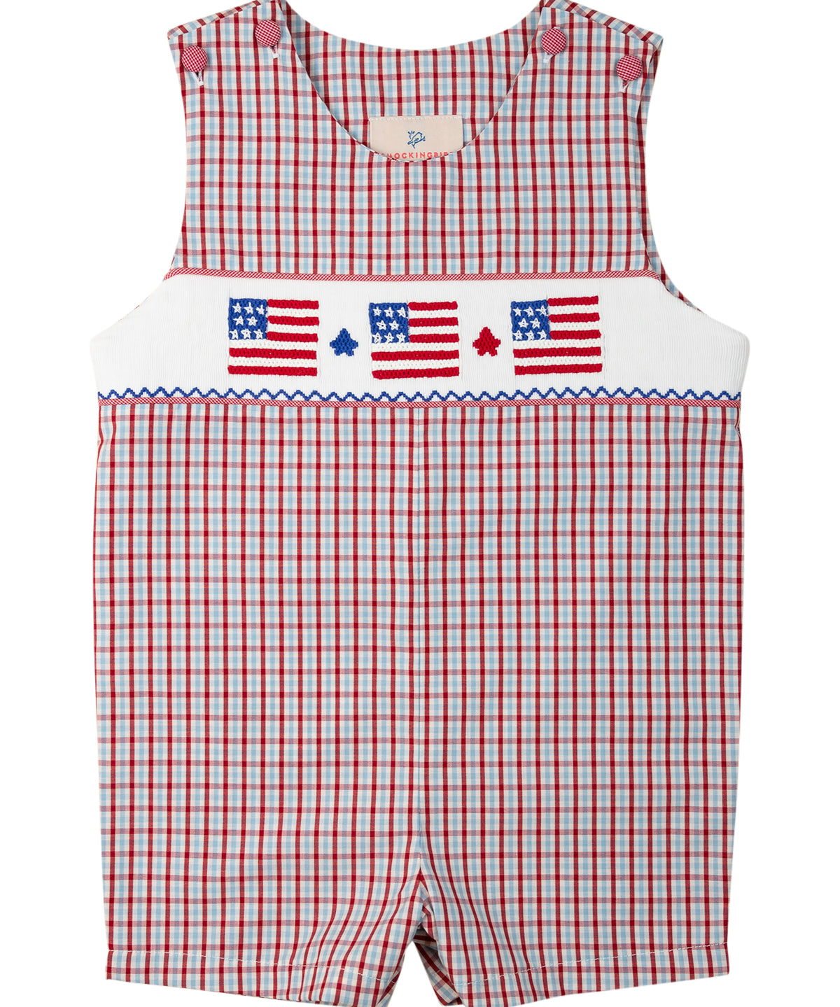 Our Flags Smocked Checked Shortall is a classic, comfy choice for little boys! Featuring hand-smocked flags and stars on patriotic plaid, this piece is ideal for festive family fun. Complete the look with matching sibling outfits for adorable group photos!
