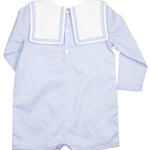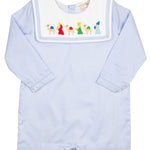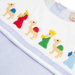 A timeless piece for the holiday season, the Wise Men Embroidered Shortall is as meaningful as it is adorable. Made in a soft blue fabric, this classic shortall features a white bib-style collar with the three wise men delicately hand-embroidered across the front. Perfect for Christmas celebrations, nativity events, or holiday photos, it’s a sweet way to dress your little one in the spirit of the season.