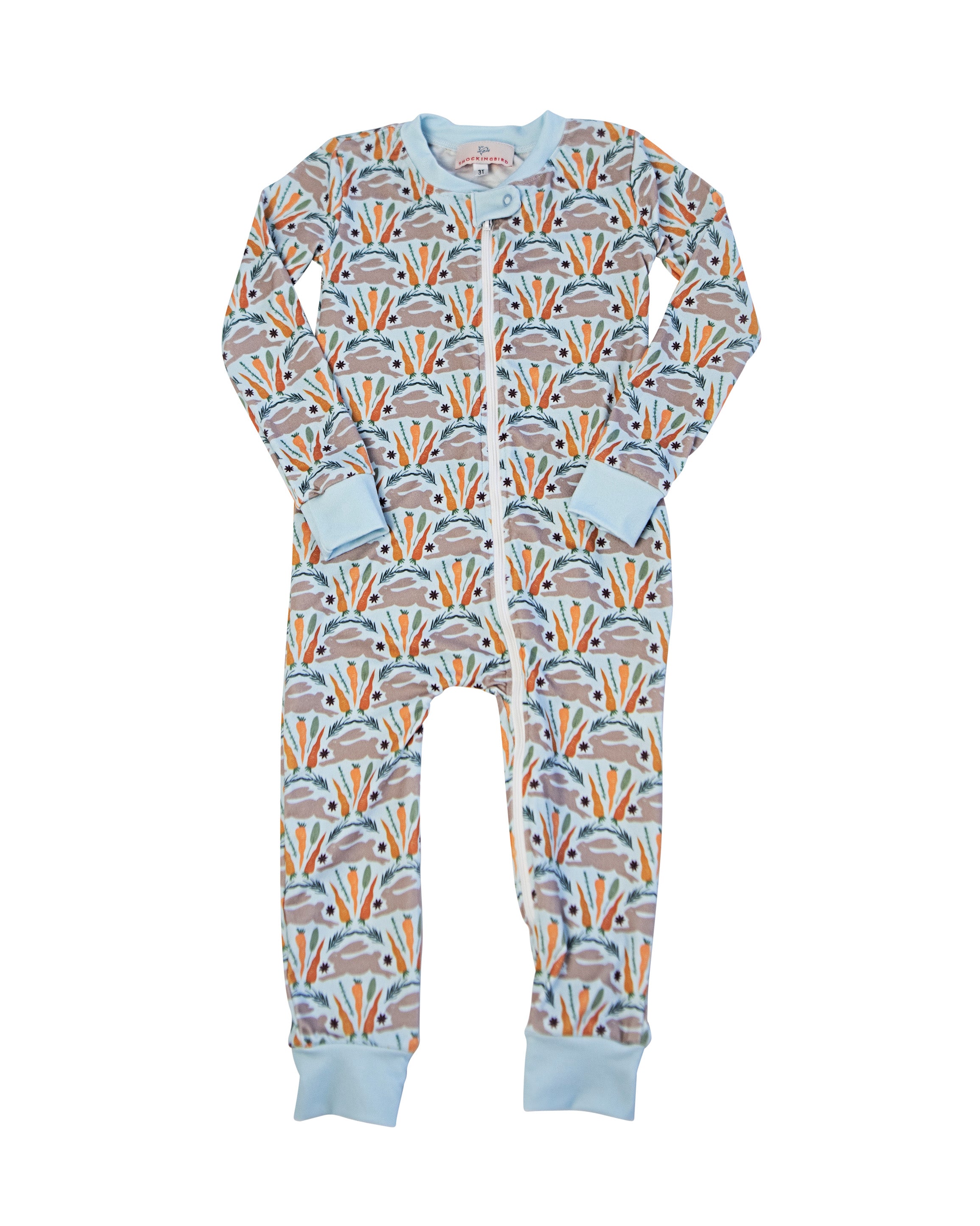 Spring Bunnies Blue Pima Cotton Zip Up Pajamas-FINAL SALE
