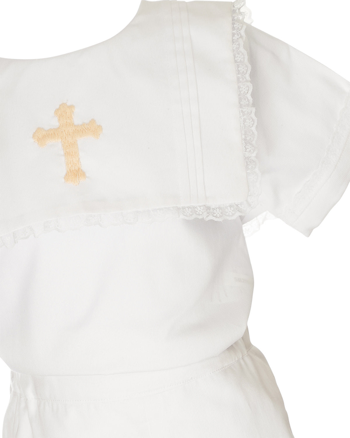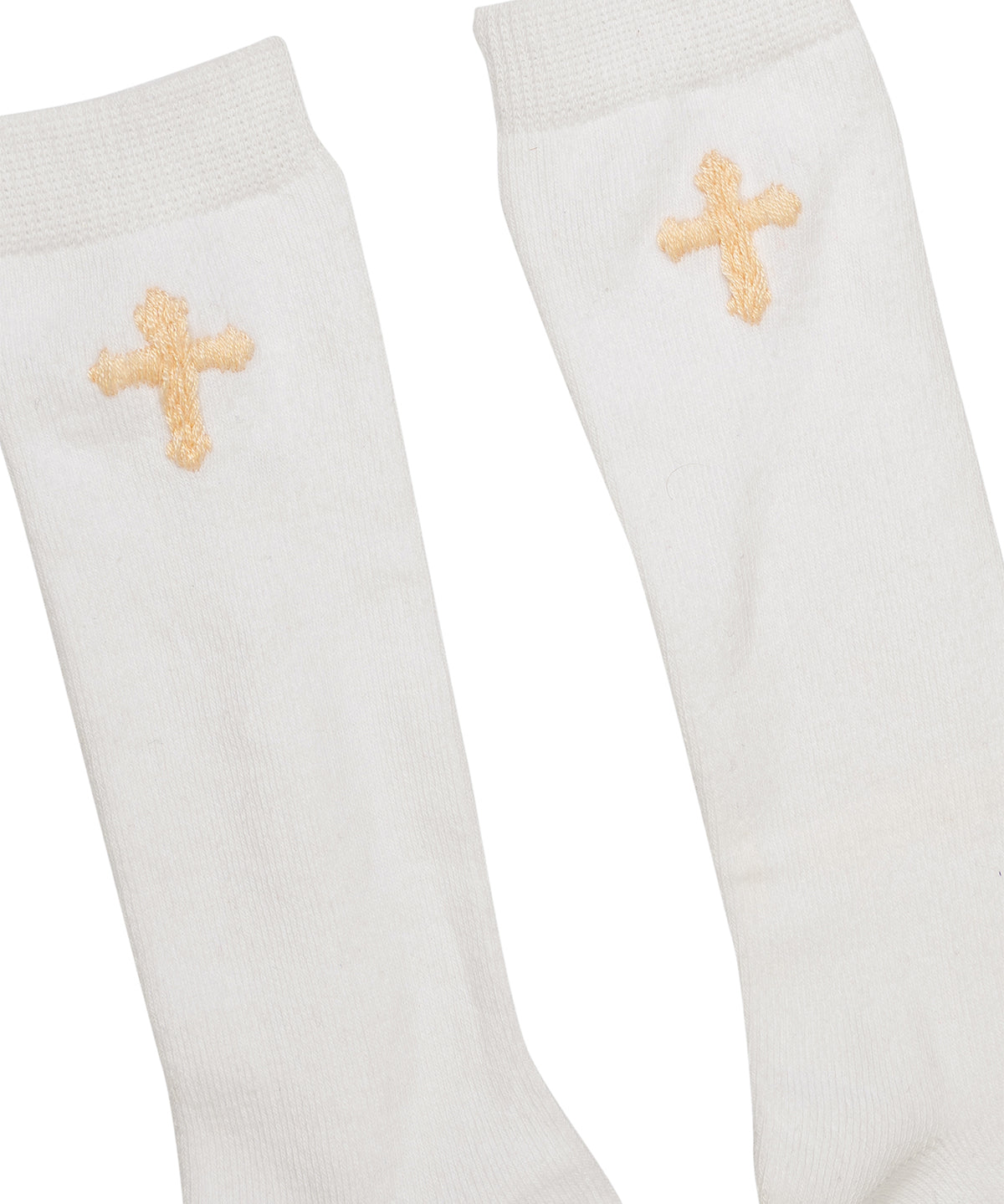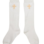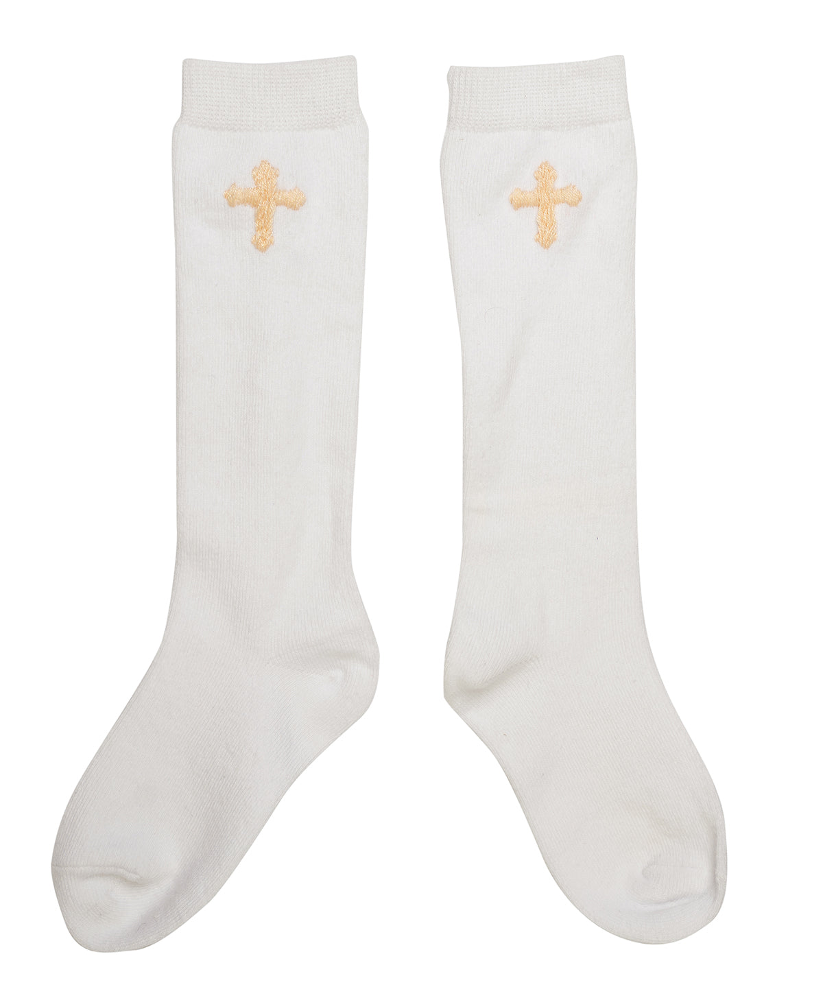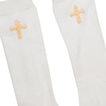 These knee high socks are perfect for Easter, Baptism, or a Christening. Socks feature a hand embroidered cream color cross at the top. 100% cotton.
