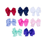 1.5" grosgrain ribbon tied in a bow backed with an alligator clip.