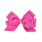Add a monogram to our beautiful bows for a personalized accessory for any outfit. Available in 8 colors and 2 sizes.