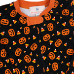 Celebrate Halloween in style with our Jack o'lantern and candy corn pajamas. These festive pajamas are perfect for Halloween and will quickly become a holiday favorite. Add a personal touch by customizing with a monogram on the seat. Made from 100% cotton, they offer comfort and fun for all your Halloween activities.