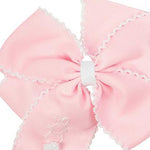 Add the finishing touch to your Easter style with our bow with an embroidered bunny. Width of bow is 5 inches and the alligator clip is 2 inches.