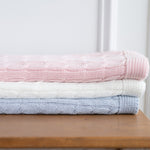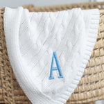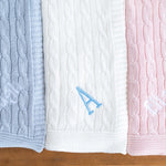 This beautiful and soft cable knit receiving blanket will be the perfect addition to your nursery. Also, makes a great gift for a newborn baby. Add a name or monogram for a personal touch.