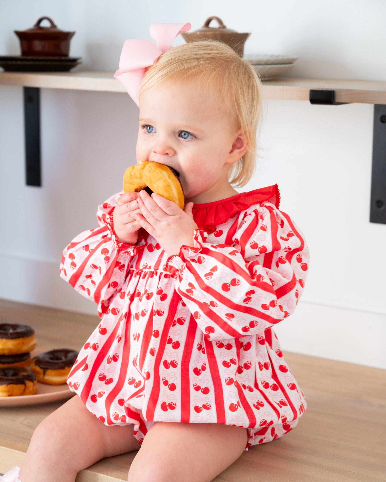 Berry sweet style for your littlest love! The Cherry On Top Bubble features a playful cherry print, ruffle collar, and long sleeves for a picture-perfect look. Comfortable enough for playtime and charming enough for family photos, it’s a timeless piece you’ll treasure for years.