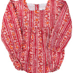 Make holiday moments extra special with our Persimmon Block Print Bubble! Designed for your little one, this charming bubble showcases a festive red and pink floral block print, long ruffle-trimmed sleeves, and a square neckline for an adorable, heirloom-inspired look. The elastic leg openings ensure a comfy fit, making it perfect for seasonal celebrations and cozy winter days.