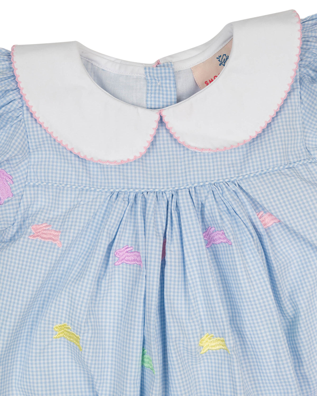 Spring into style with our colorful bunnies embroidered shortall, crafted from timeless cotton gingham! Perfect for Easter and any spring occasion, this shortall come with adjustable straps for a comfy fit. They're the ultimate springtime essential! For adorable sibling coordination, explore our Colorful Bunnies Embroidered Collection.