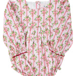 Dress your little one in festive charm with our Holiday Bow Striped Bubble! Featuring a beautiful Christmas wreath print, this adorable one-piece is designed for both style and comfort. Long sleeves and ruffle leg openings add a sweet vintage touch, while the easy snap closures ensure fuss-free changes. A perfect holiday outfit for making treasured memories!