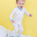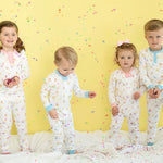 Party Time Pima Zip Up Pajamas with Blue Trim- FINAL SALE