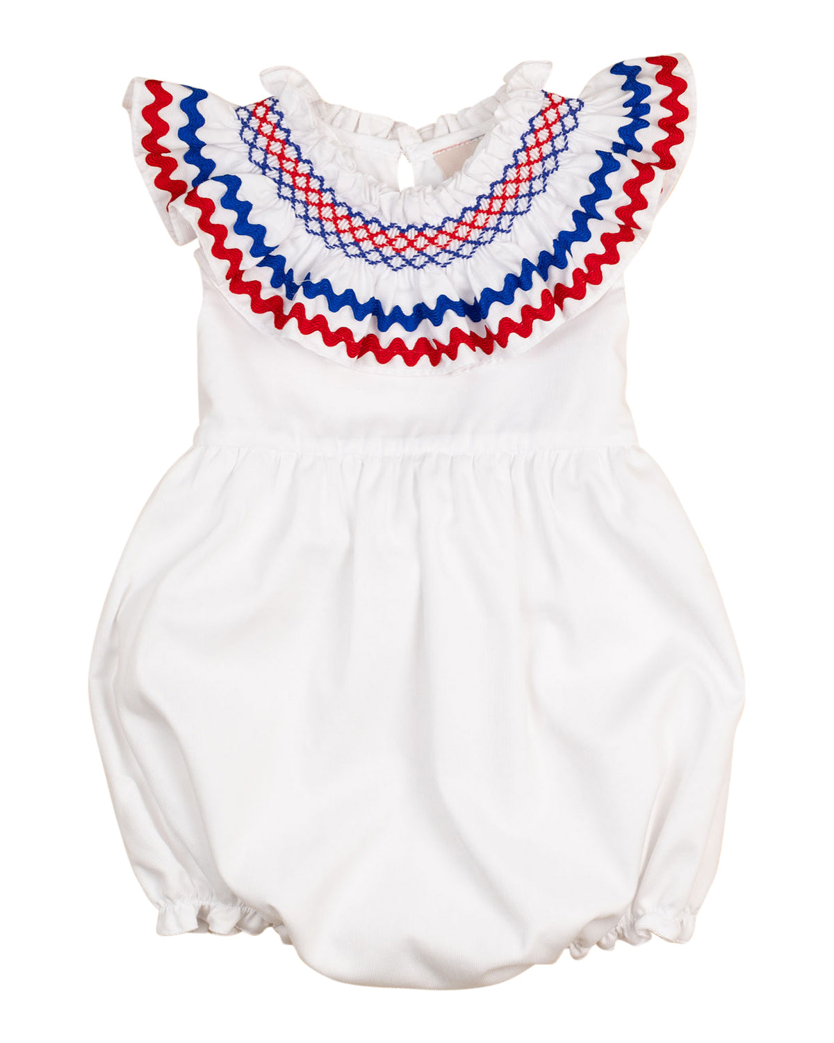 The Red White Blue Smocked Chelsea Bubble is full of festive spirit. Picture-ready for summer barbecues and patriotic parades.
