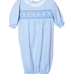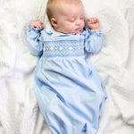 Smocked Baby Gown For Girl in Pale Blue Knit