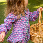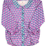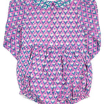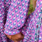 This bubble is hand block printed in Jaipur on 100% poplin cotton fabric. We love the lightweight fabric for fall. It's super soft and perfect to dress up or down. Makes a great transitional piece.
