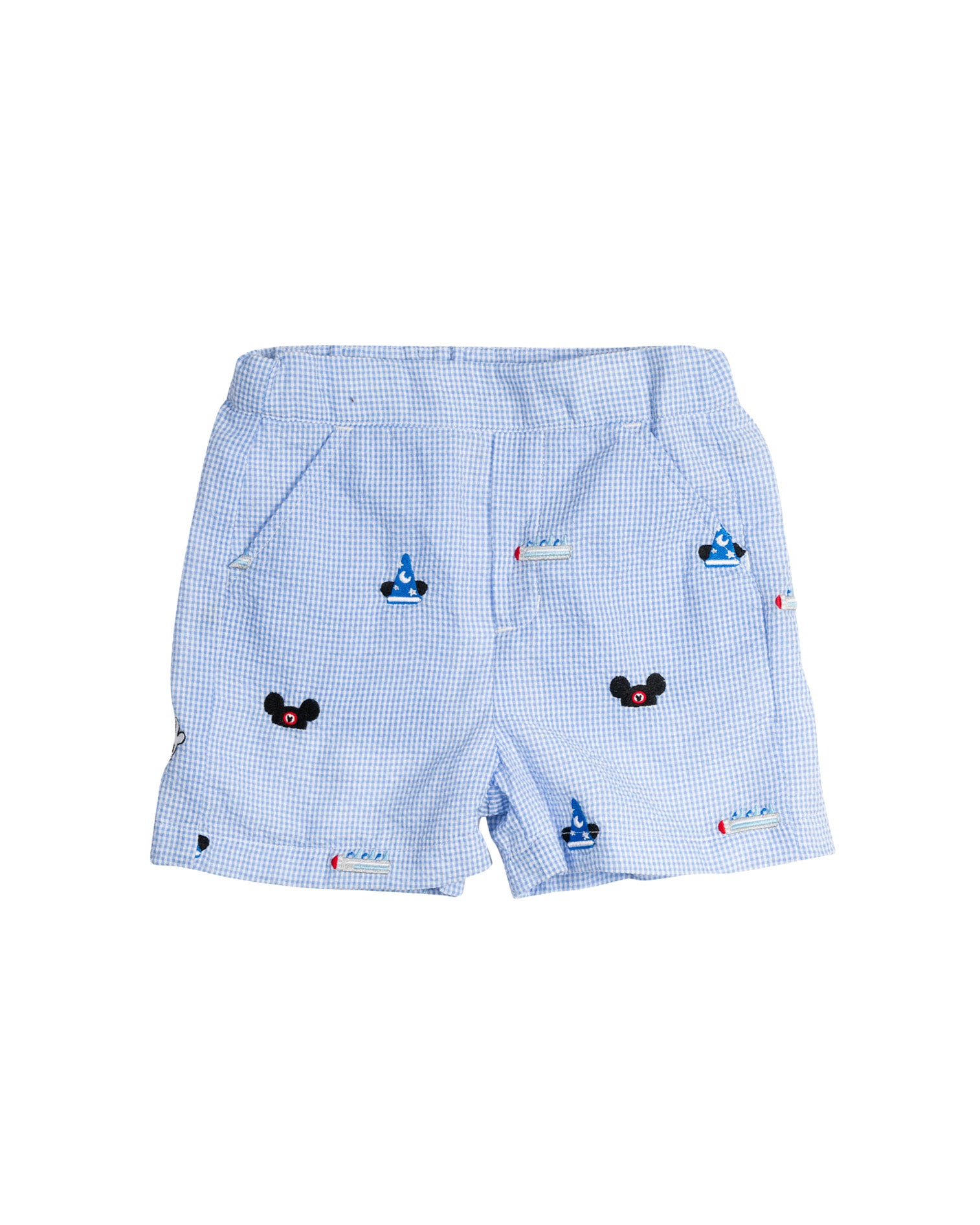 Let the magic of the parks come to life in these embroidered shorts. These shorts feature some mouse favorites throughout, functional pockets, and an elastic back waist for a perfect fit.