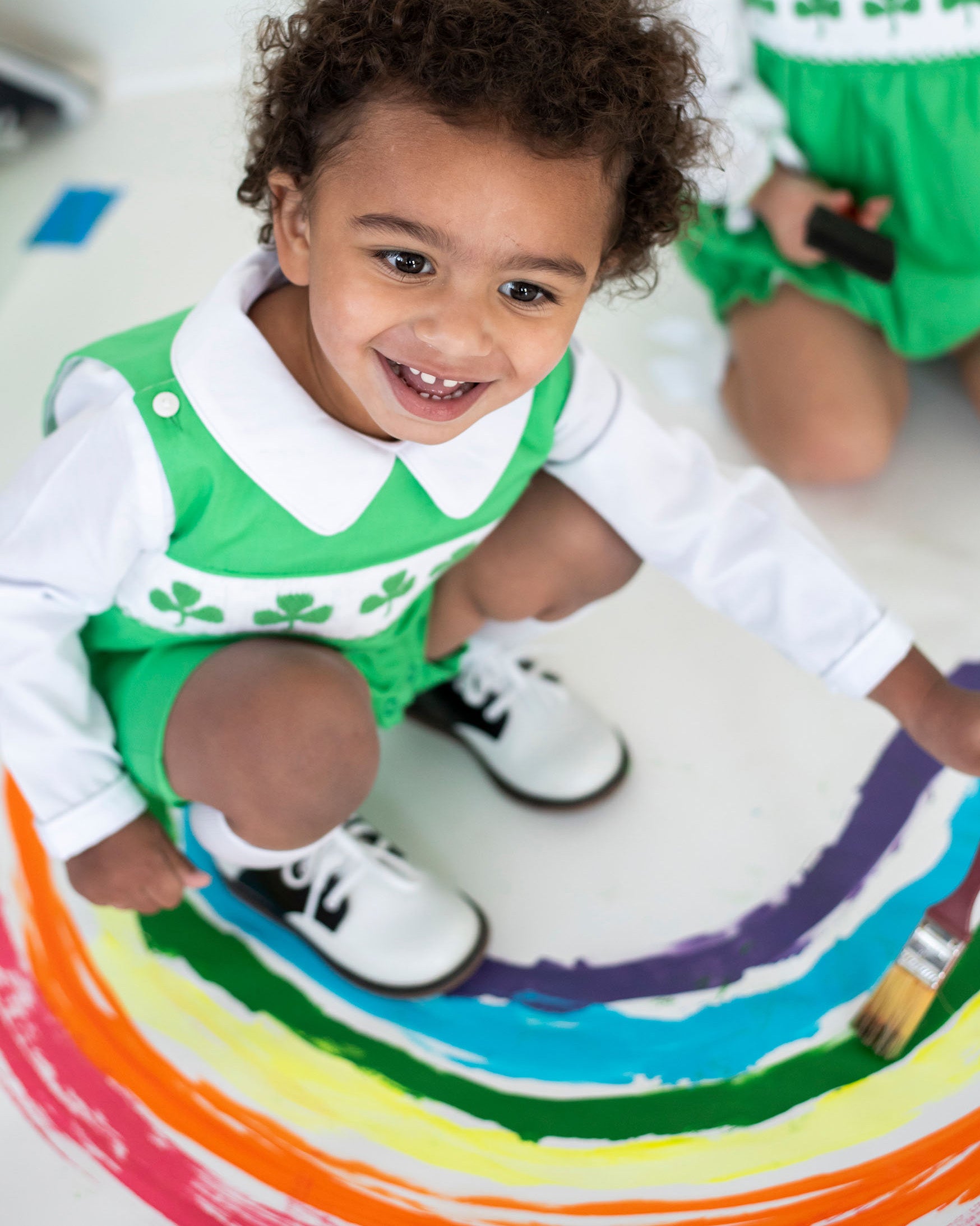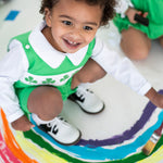 Perfect for St. Patrick’s Day playdates and springtime adventures, this green knit shortall features playful shamrock embroidery and a comfortable, breathable fit. The smocked design adds a touch of Irish elegance, making it an ideal choice for St. Patrick's Day celebrations or casual outings with family and friends.