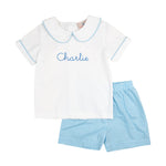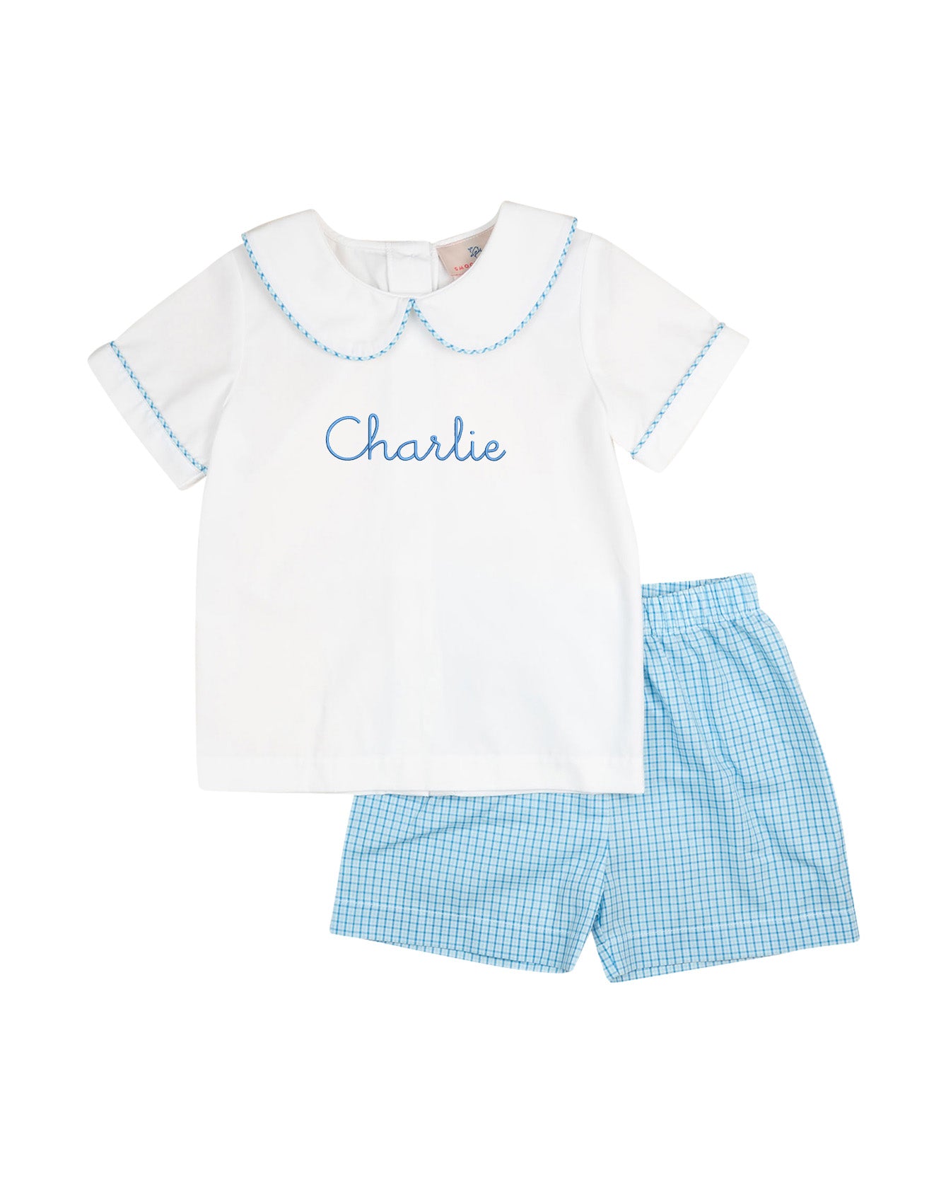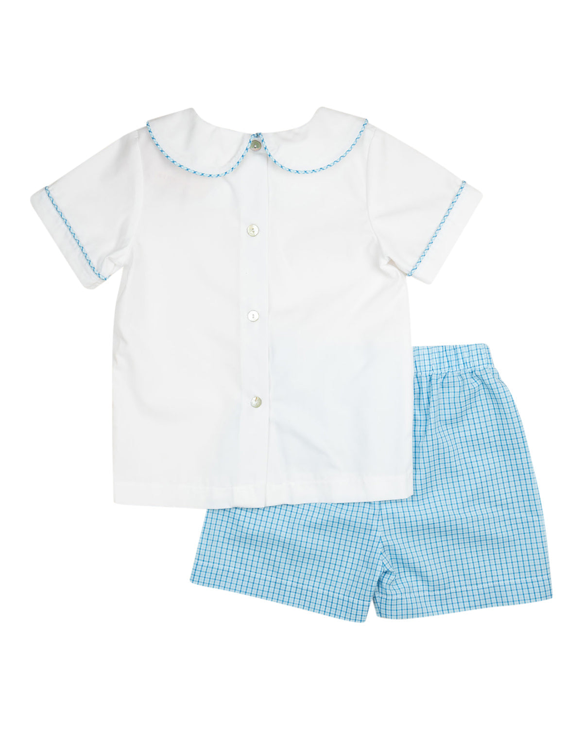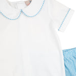 Dress him in polished charm with the Blue Plaid Shorts Set. Featuring a crisp collared top paired with matching plaid shorts, this look is ready for picture day or any spring celebration.