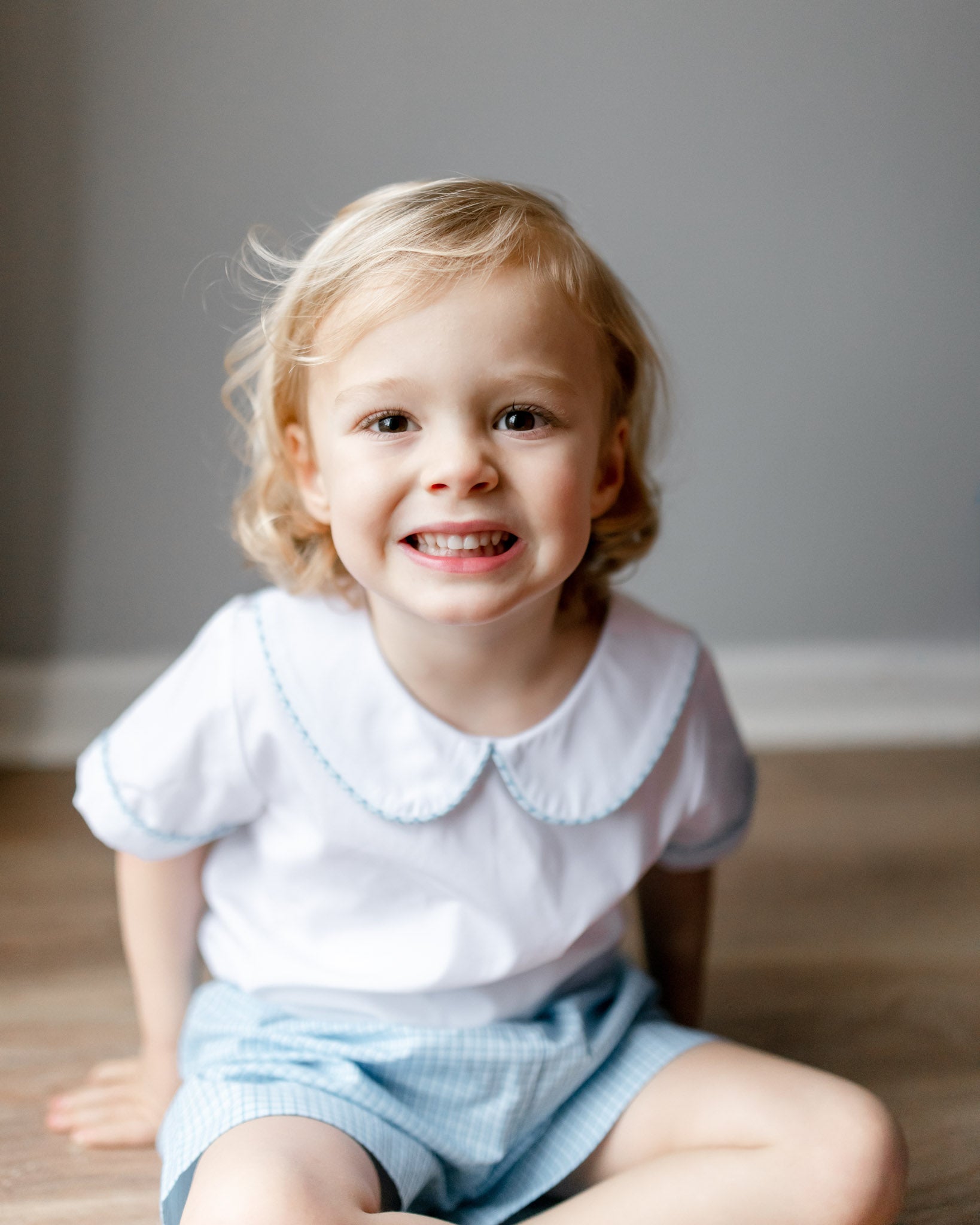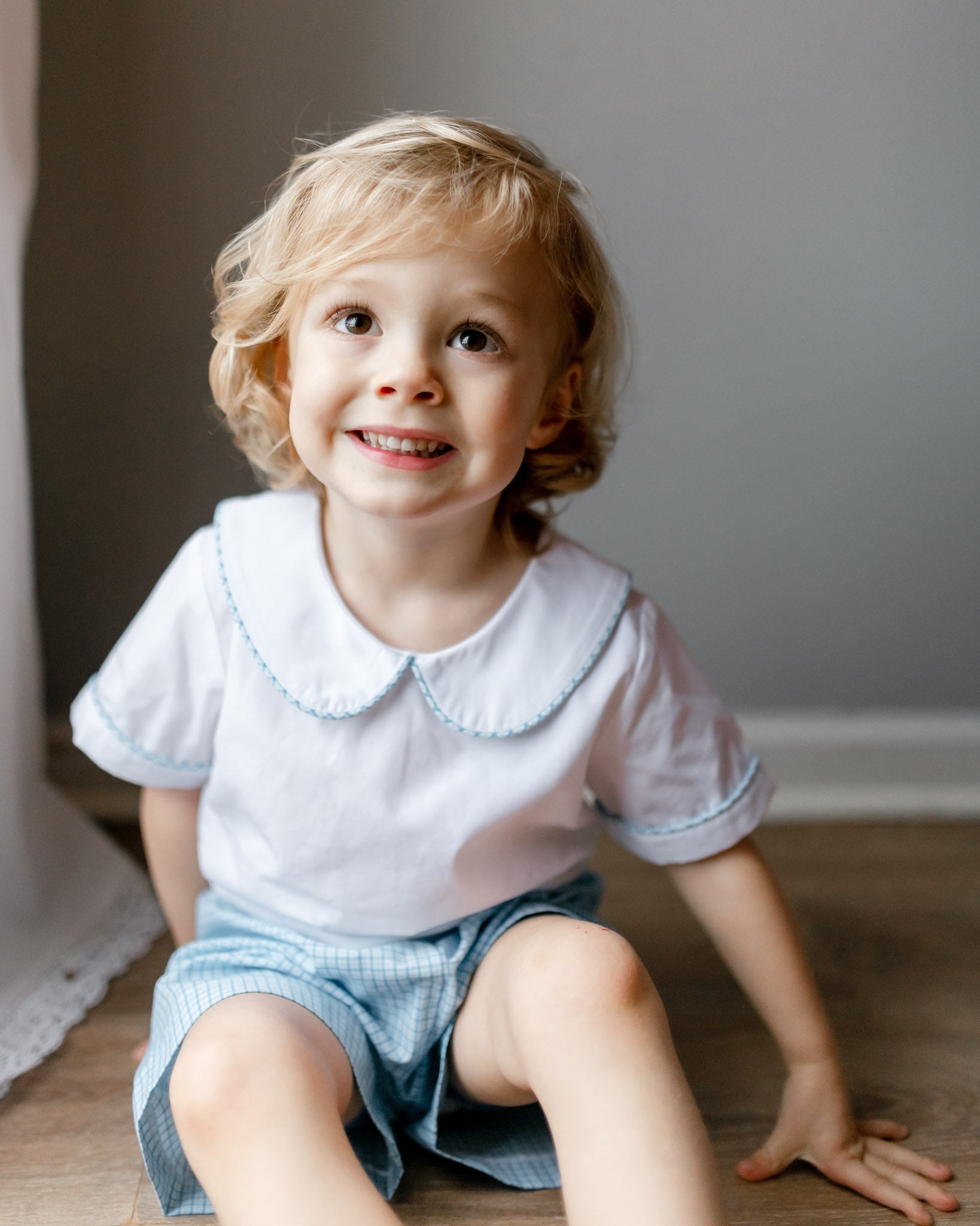 Dress him in polished charm with the Blue Plaid Shorts Set. Featuring a crisp collared top paired with matching plaid shorts, this look is ready for picture day or any spring celebration.