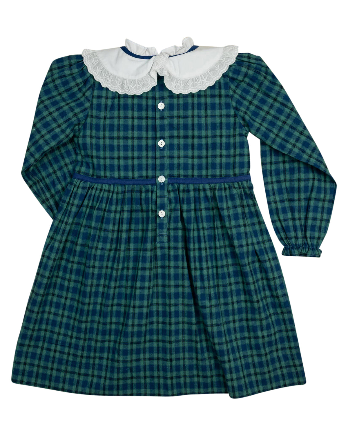 Sophisticated and versatile, our Navy Tartan Plaid Dress is a cool-weather favorite. With a crisp Peter Pan collar and rich navy-and-green plaid, this dress strikes the perfect balance between classic and cozy. Whether it’s family portraits or Sunday dinner, she’ll feel polished and playful all at once.