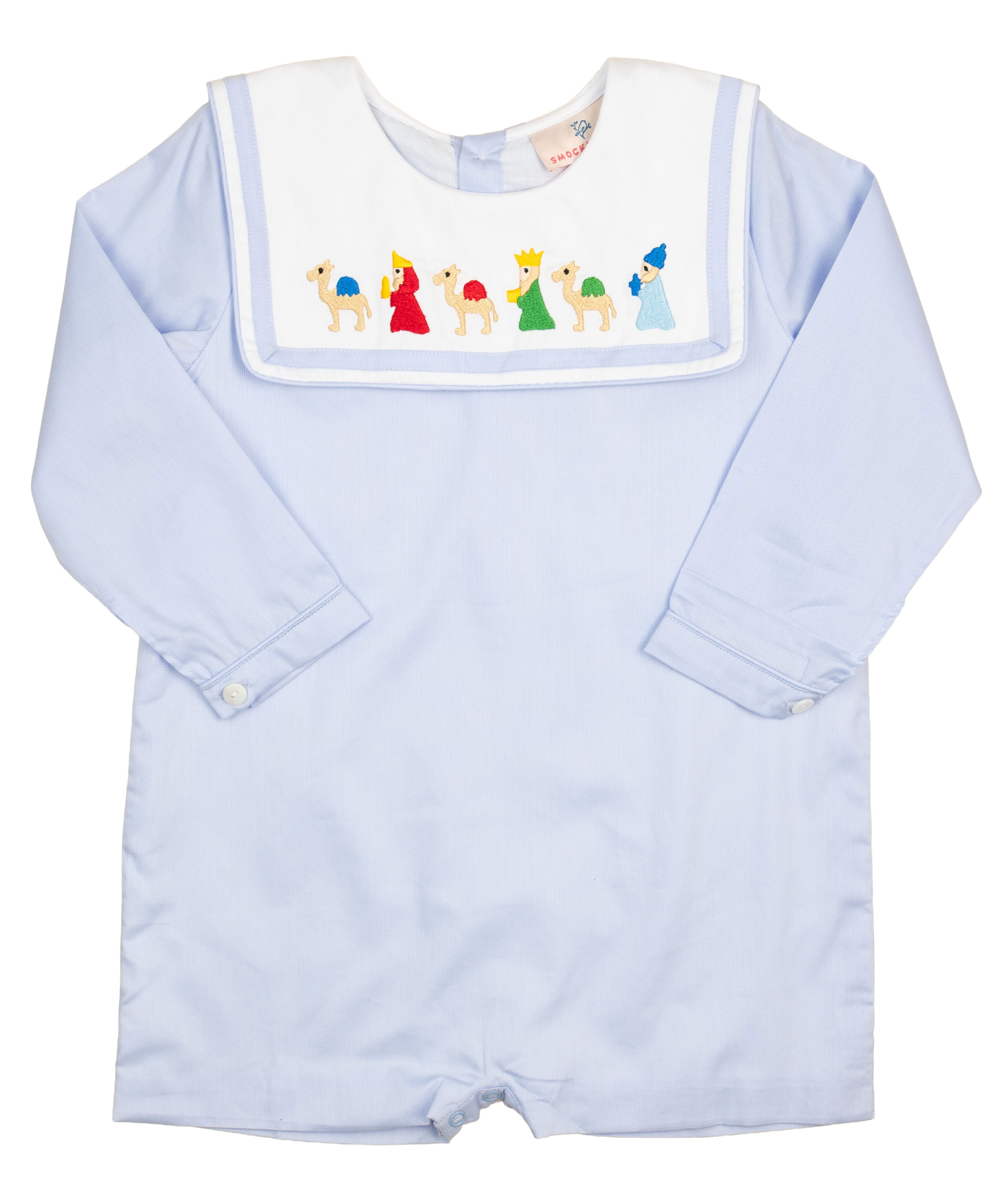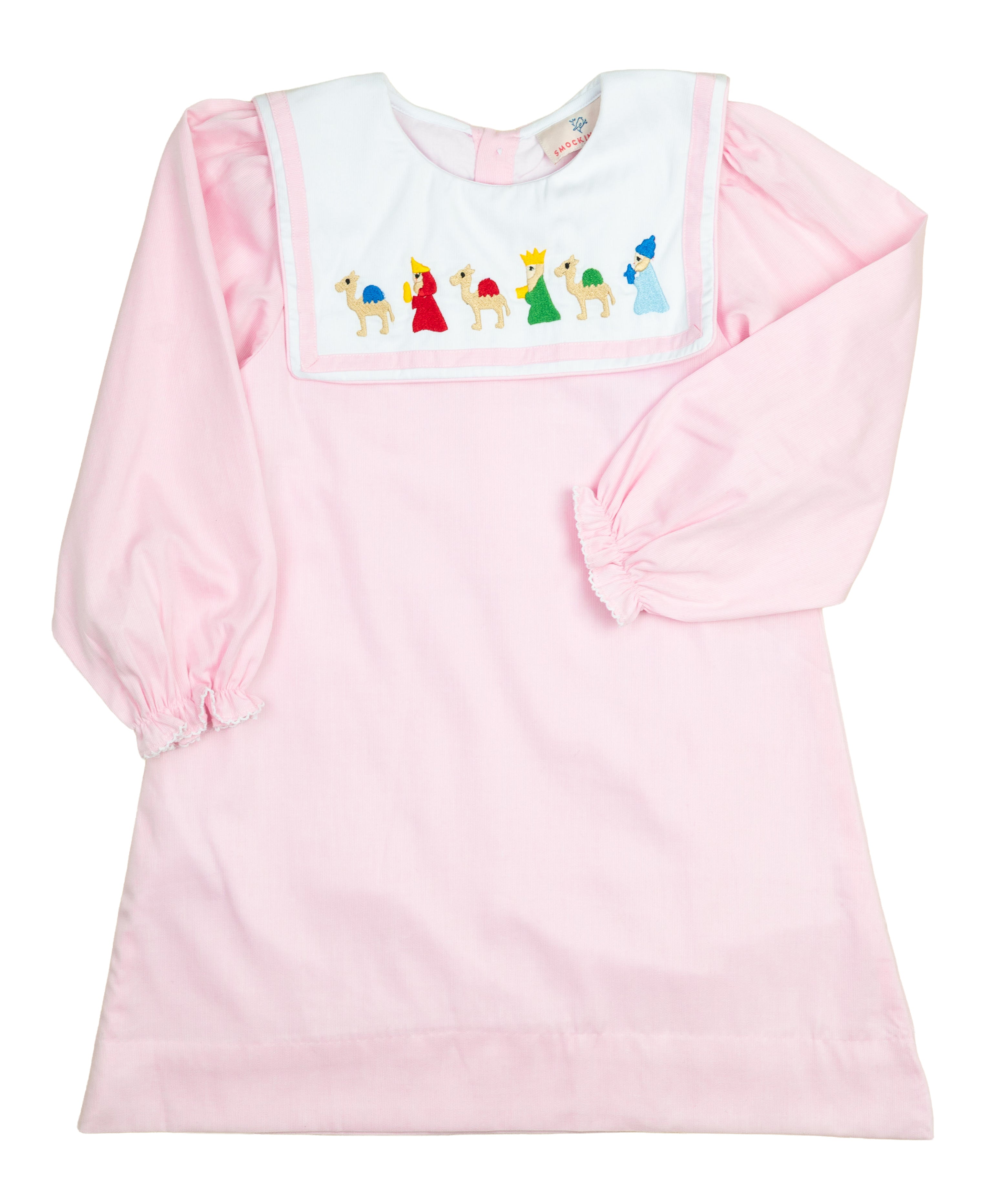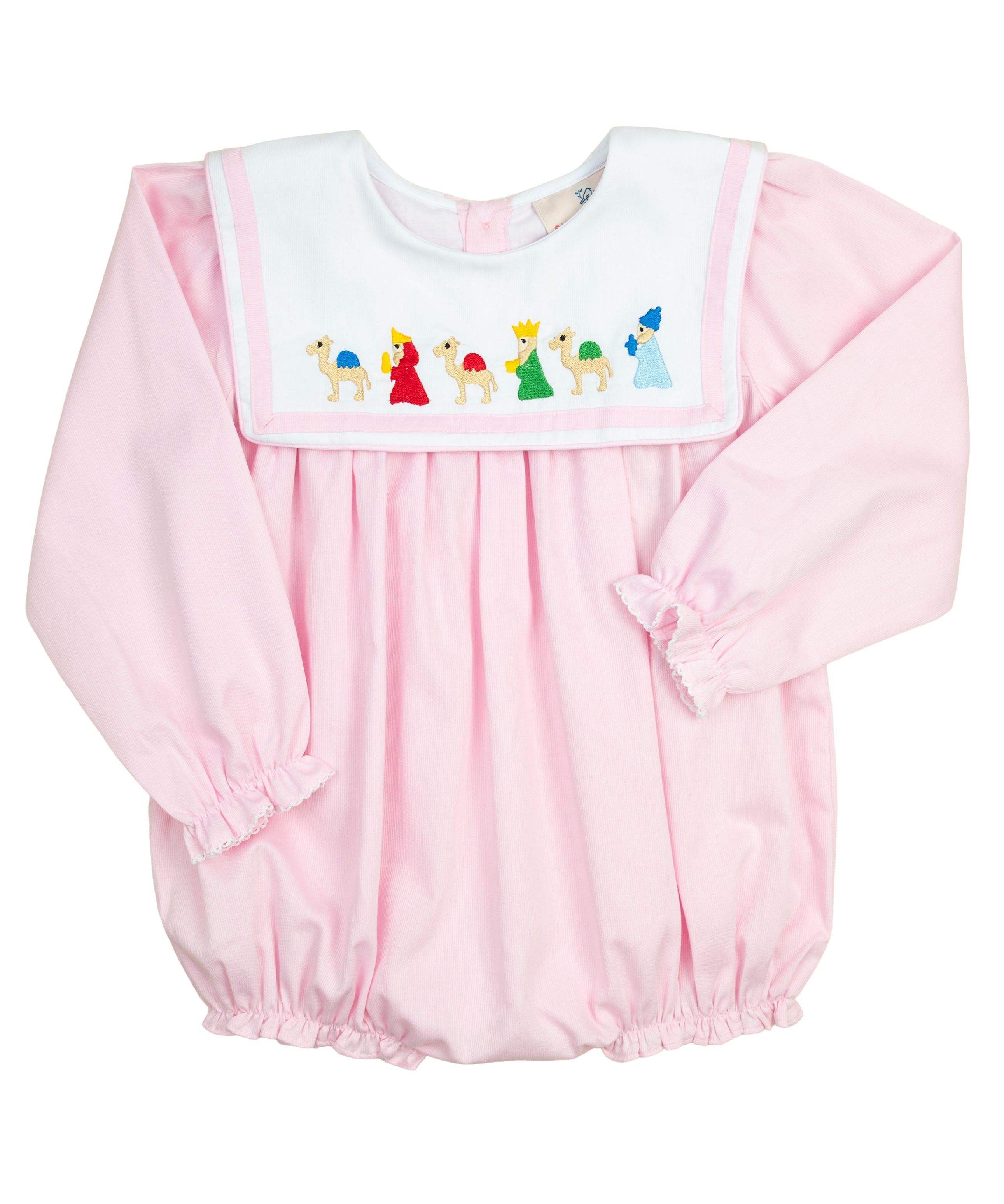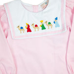 A timeless piece for the holiday season, the Wise Men Embroidered Dress is as meaningful as it is adorable. Made in a soft pink fabric, this classic dress features a white bib-style collar with the three wise men delicately hand-embroidered across the front. Perfect for Christmas celebrations, nativity events, or holiday photos, it’s a sweet way to dress your little one in the spirit of the season.