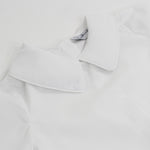 The Boys Peter Pan Collared Short Sleeve Shirt is an essential in any wardrobe. Featuring buttons down the back. Wear alone with navy shorts, or perfect for layering under shortalls and longalls. Elevate our Crewneck Sweatshirt by wearing a collared shirt underneath. Add a name to the collar for the perfect personalized outfit.