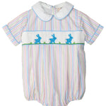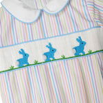 Bunnies Smocked Colorful Stripes Bubble In Blue-FINAL SALE