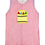 Crayon Pocket Red Seersucker Shortall- FINAL SALE