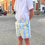 This beautiful custom stripe was hand painted by Grey Hall of Grey Hall Designs. When Grey and her sister, Paige, came to us to collaborate for a fun collection, we jumped at the chance to work with them. Her beautiful and whimsical talent is evident in each piece she creates. 100% linen