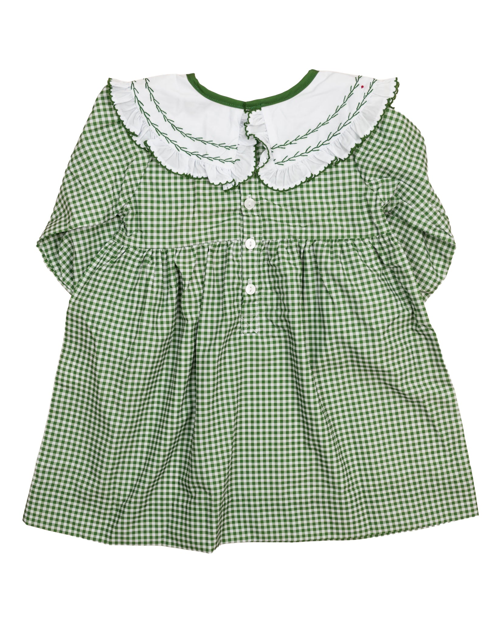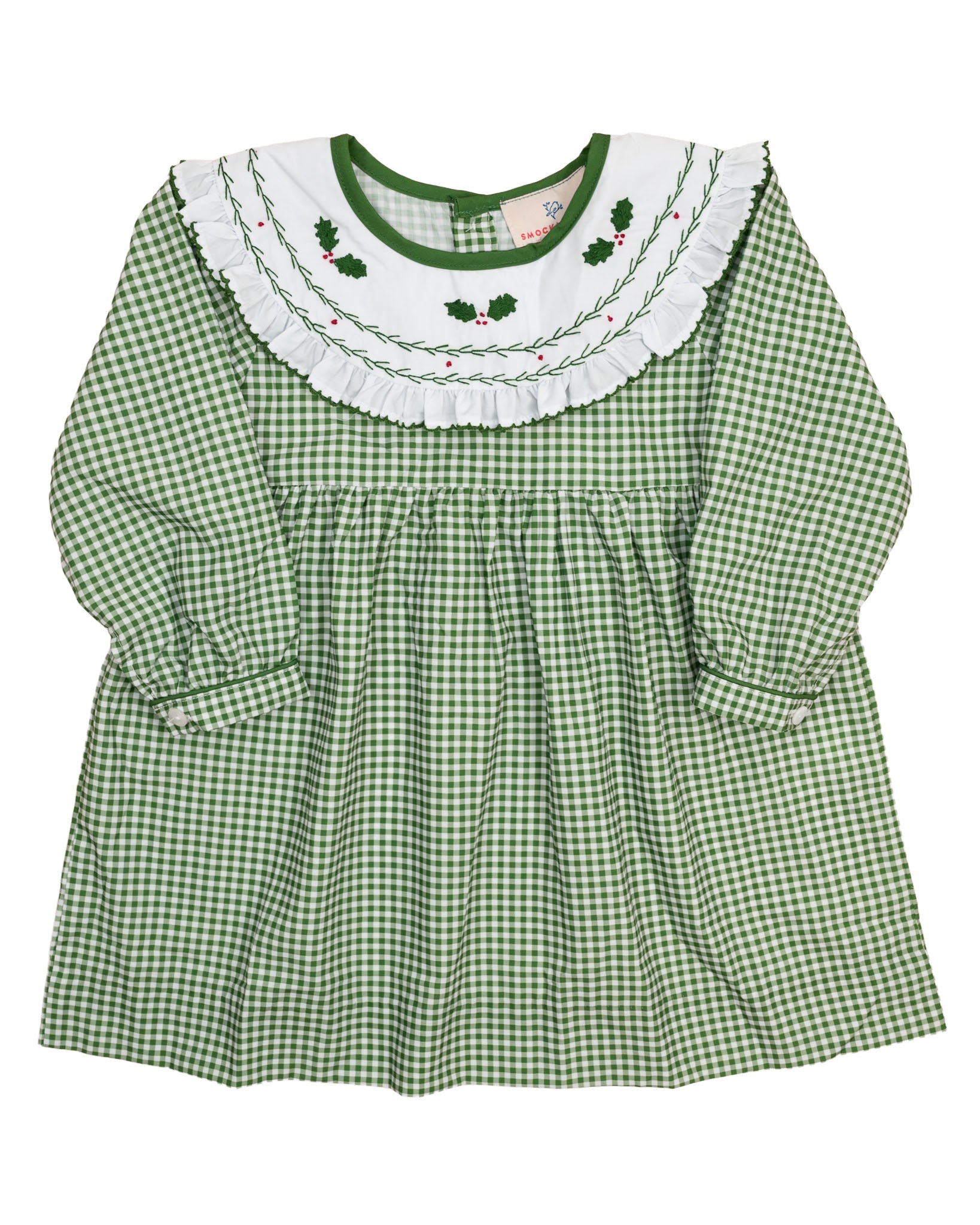 Timeless elegance meets festive charm in our Holly Embroidered Green Checked Dress. Featuring a delicate yoke with holly embroidery, this dress is perfect for holiday gatherings and family portraits. The classic green checkered fabric adds a cozy, vintage-inspired touch, while the long sleeves keep your little one warm all season long. A must-have for a picture-perfect Christmas look!
