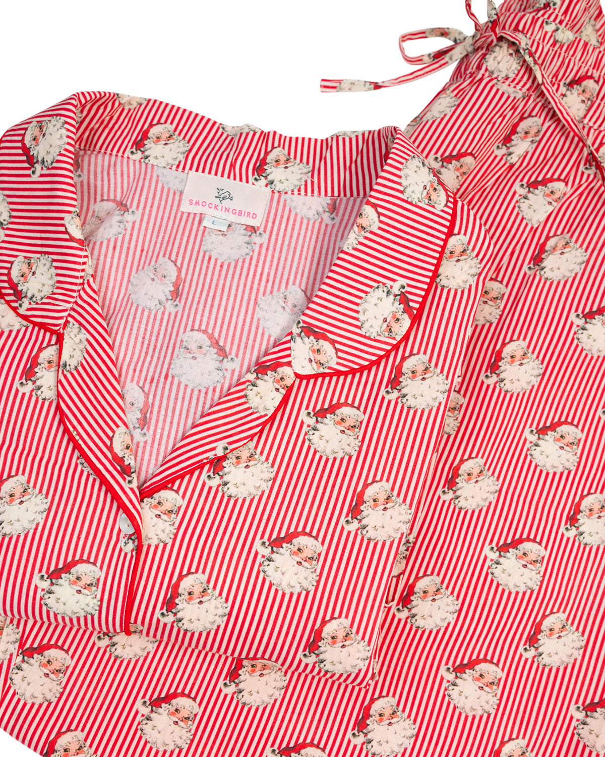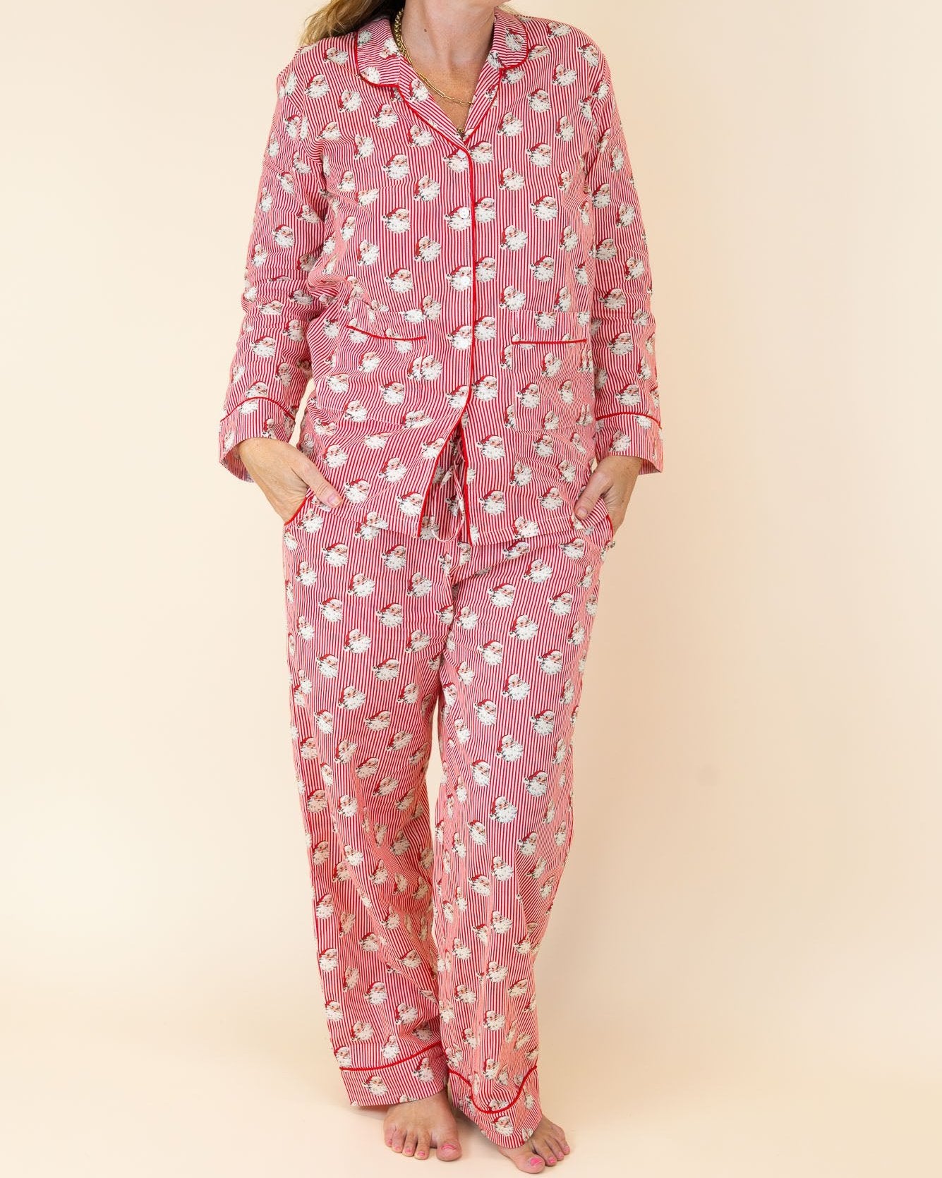 Red Striped Vintage Santa Button Down Ladies Pajama Set