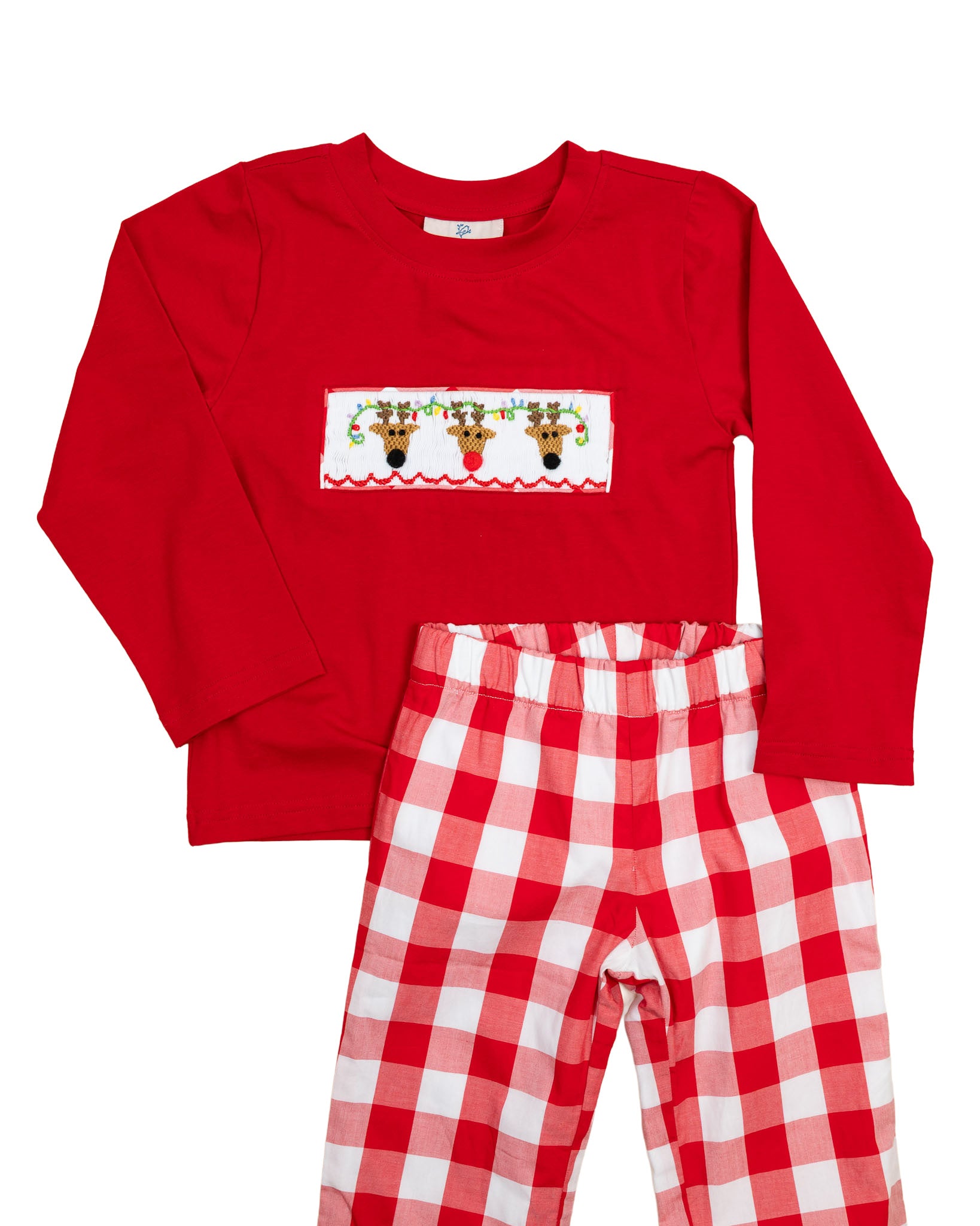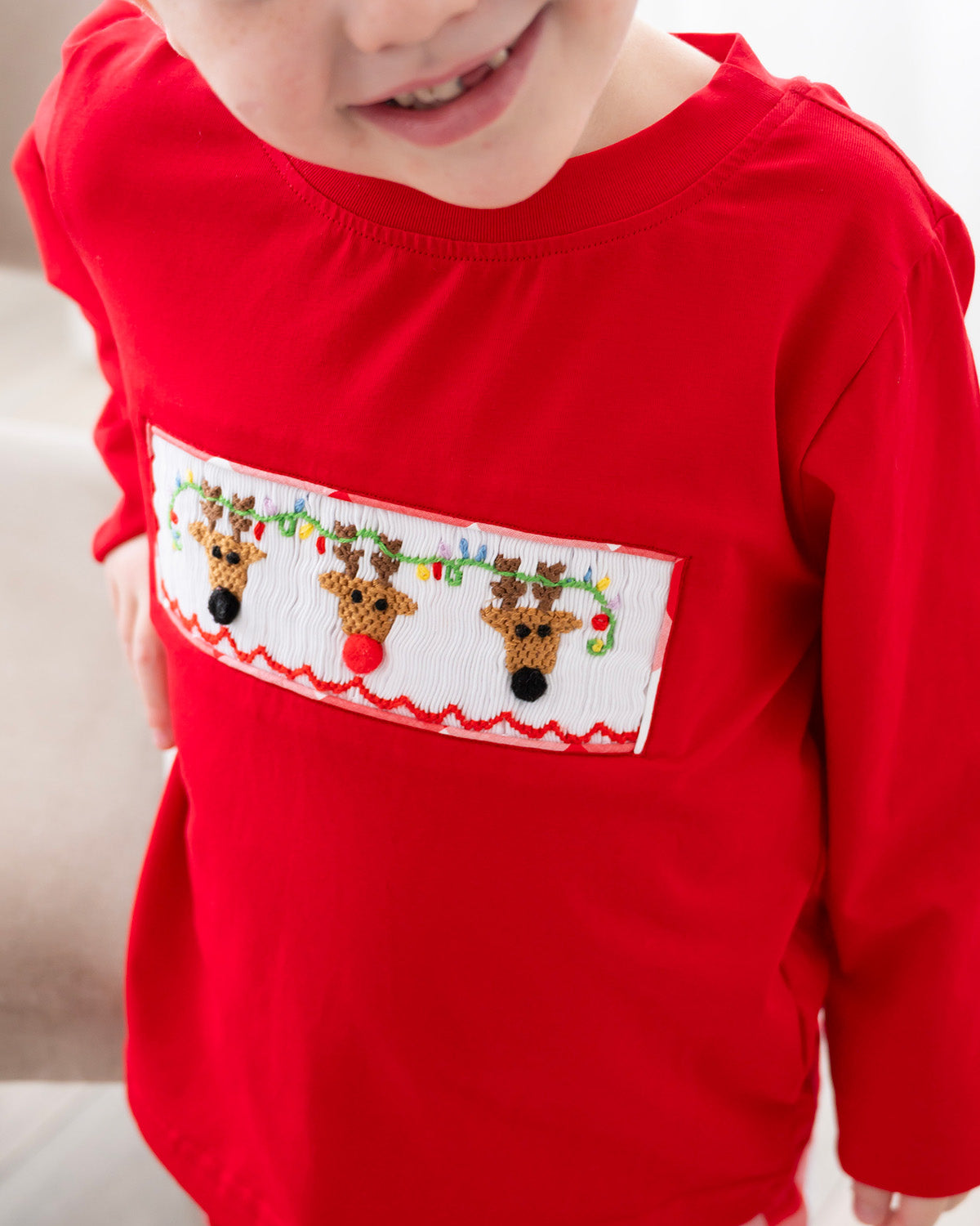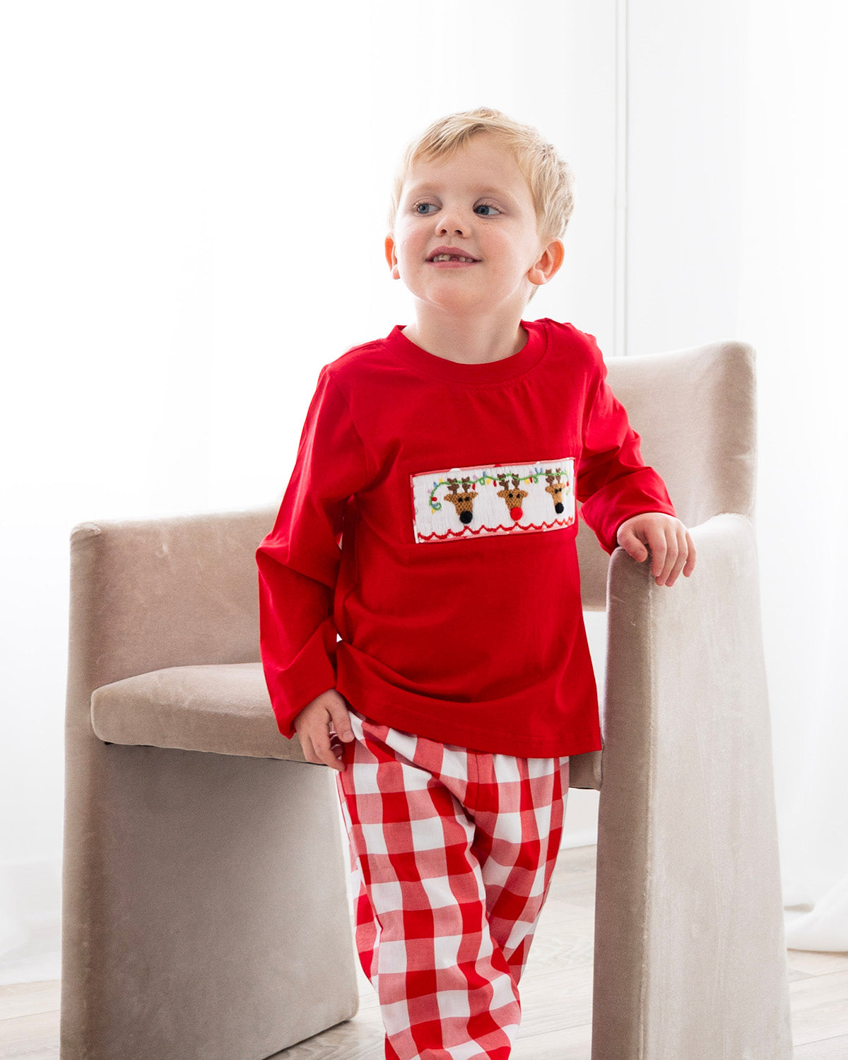 This Christmas pants set showcases a cute reindeer design made for festive fun. It’s the perfect blend of comfort and holiday cheer for your little one. Great for Christmas mornings, seasonal events, and family photos. A cheerful reindeer outfit that captures the joy of the holidays.