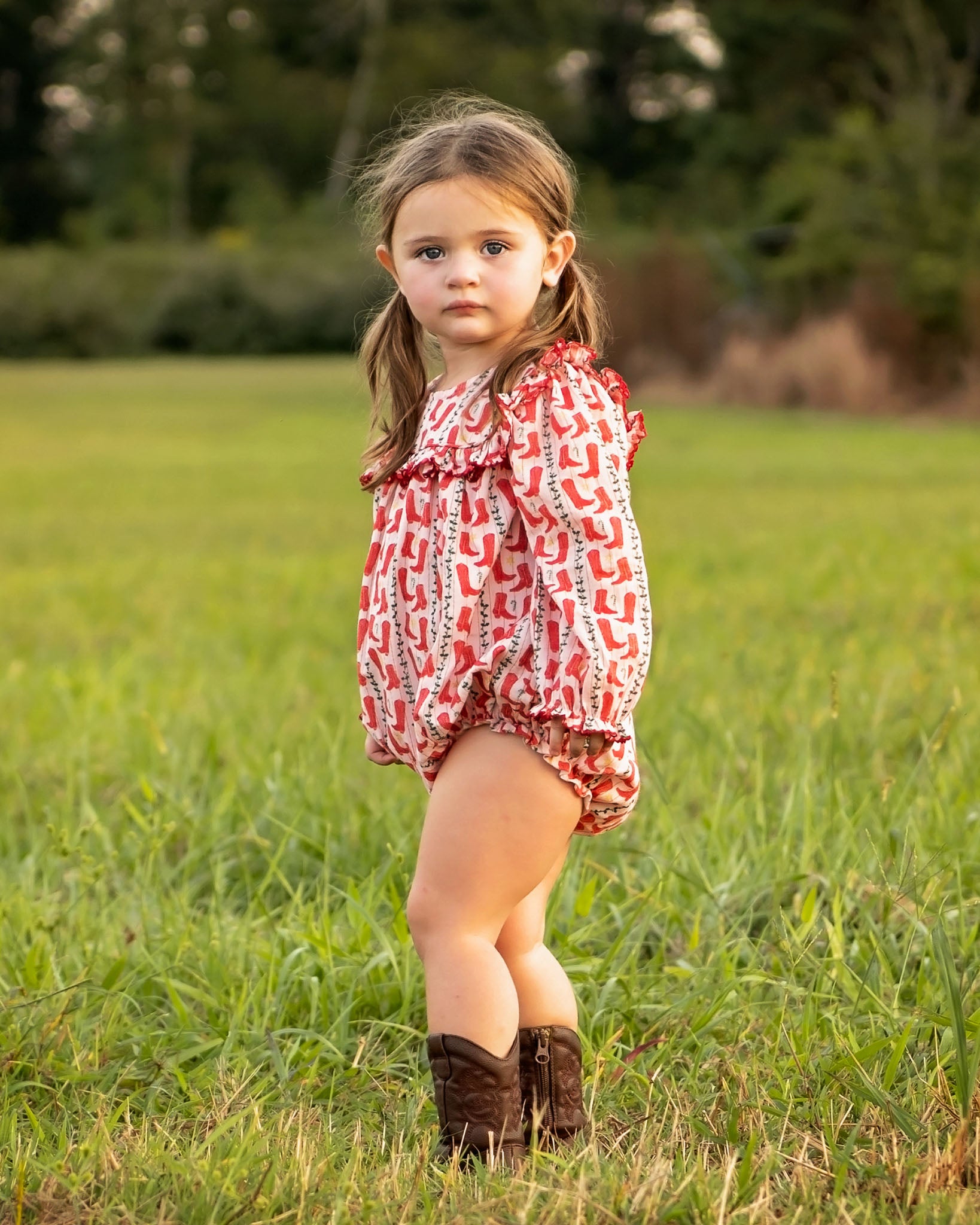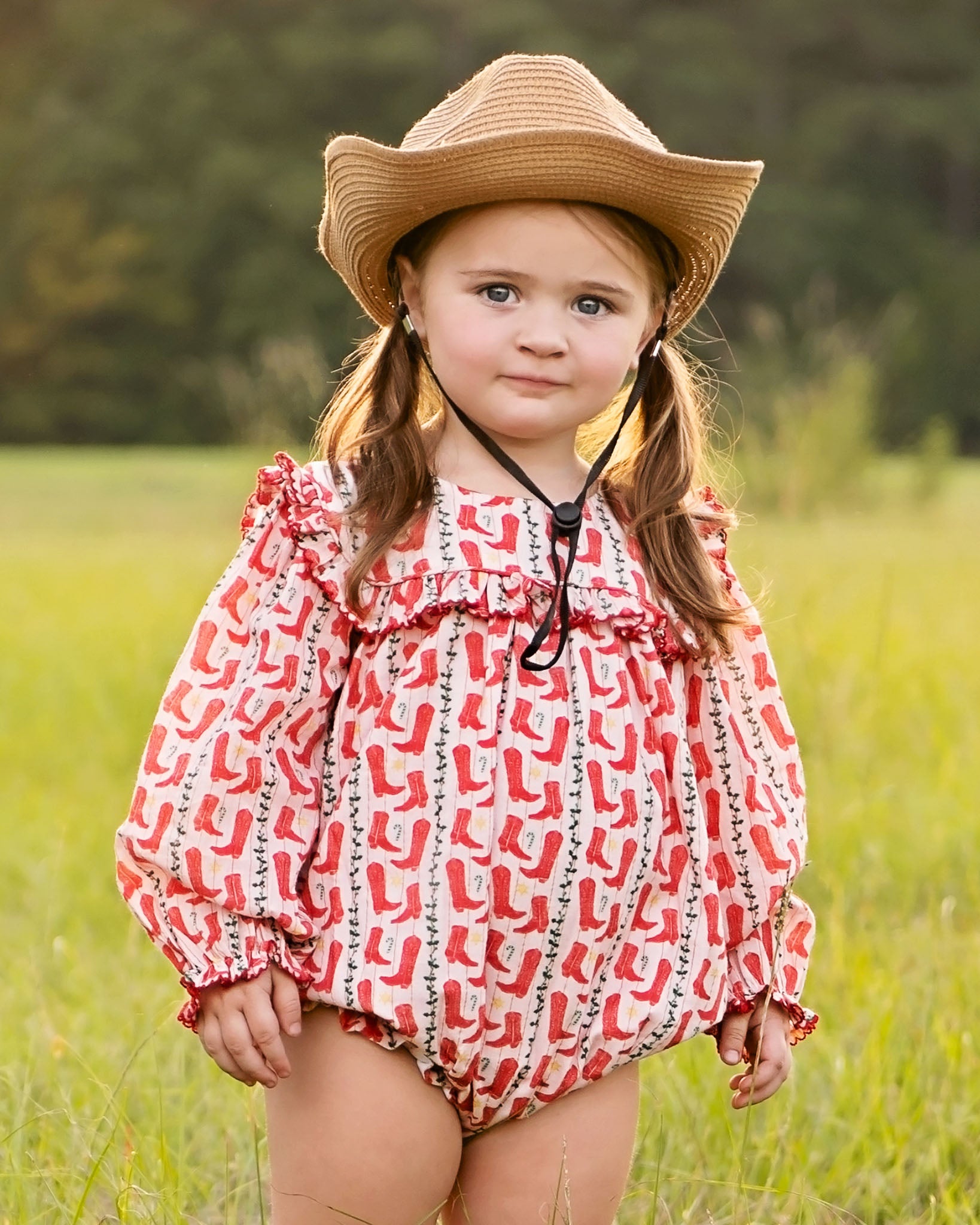 The Cowboy Boots and Candy Canes Bubble is a festive holiday essential for little ones. Made with a cheerful Nashville-inspired country candy cane print, this bubble is soft, playful, and adorable. Perfect for holiday photos, gatherings, and cozy Christmas mornings, it’s a season-ready outfit parents adore.