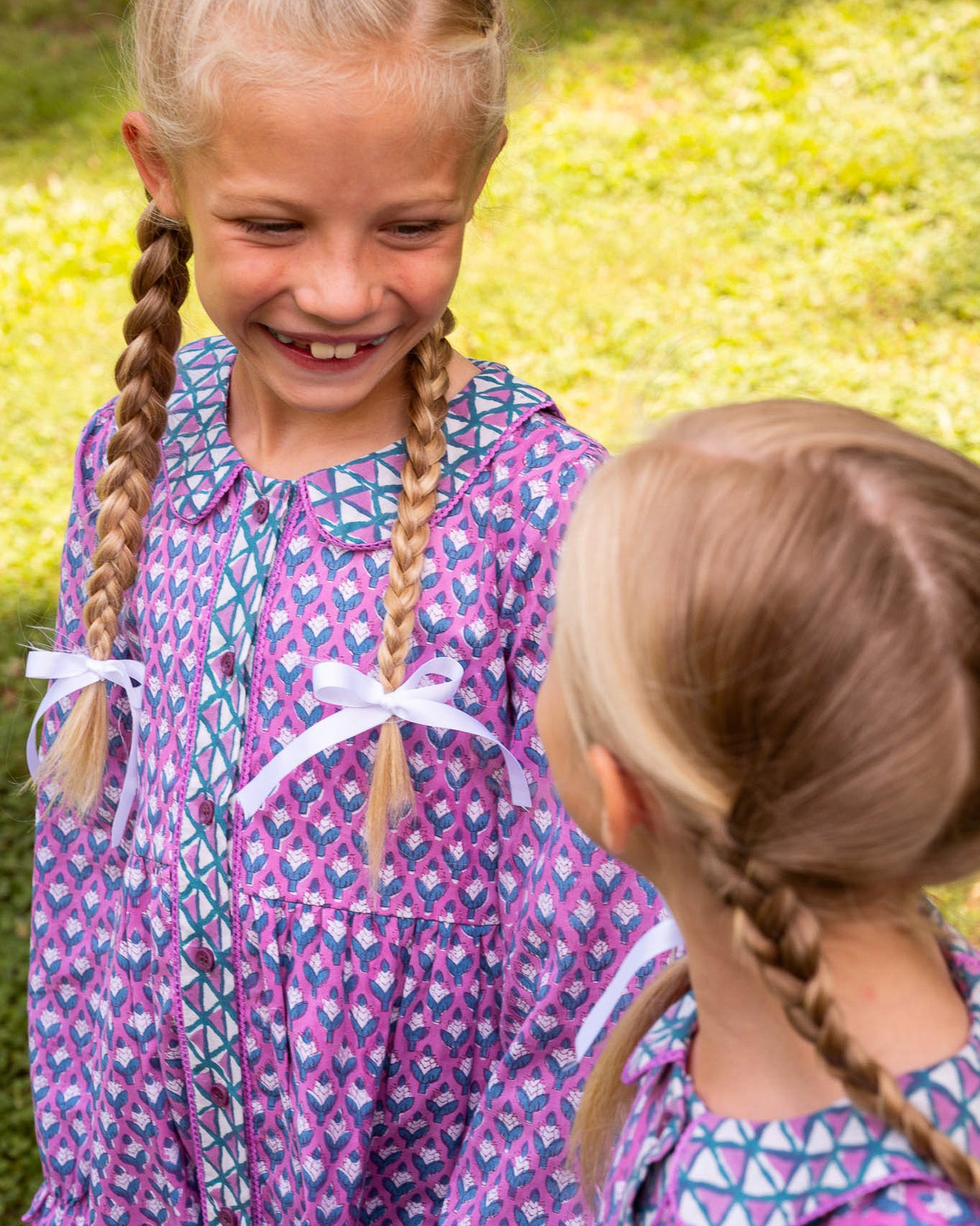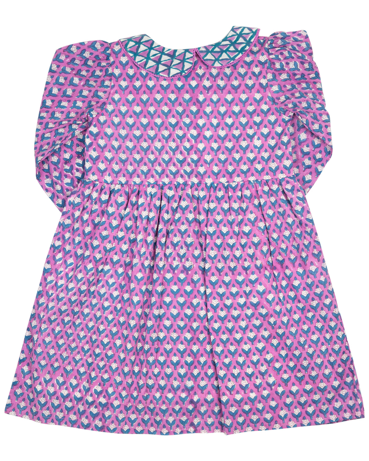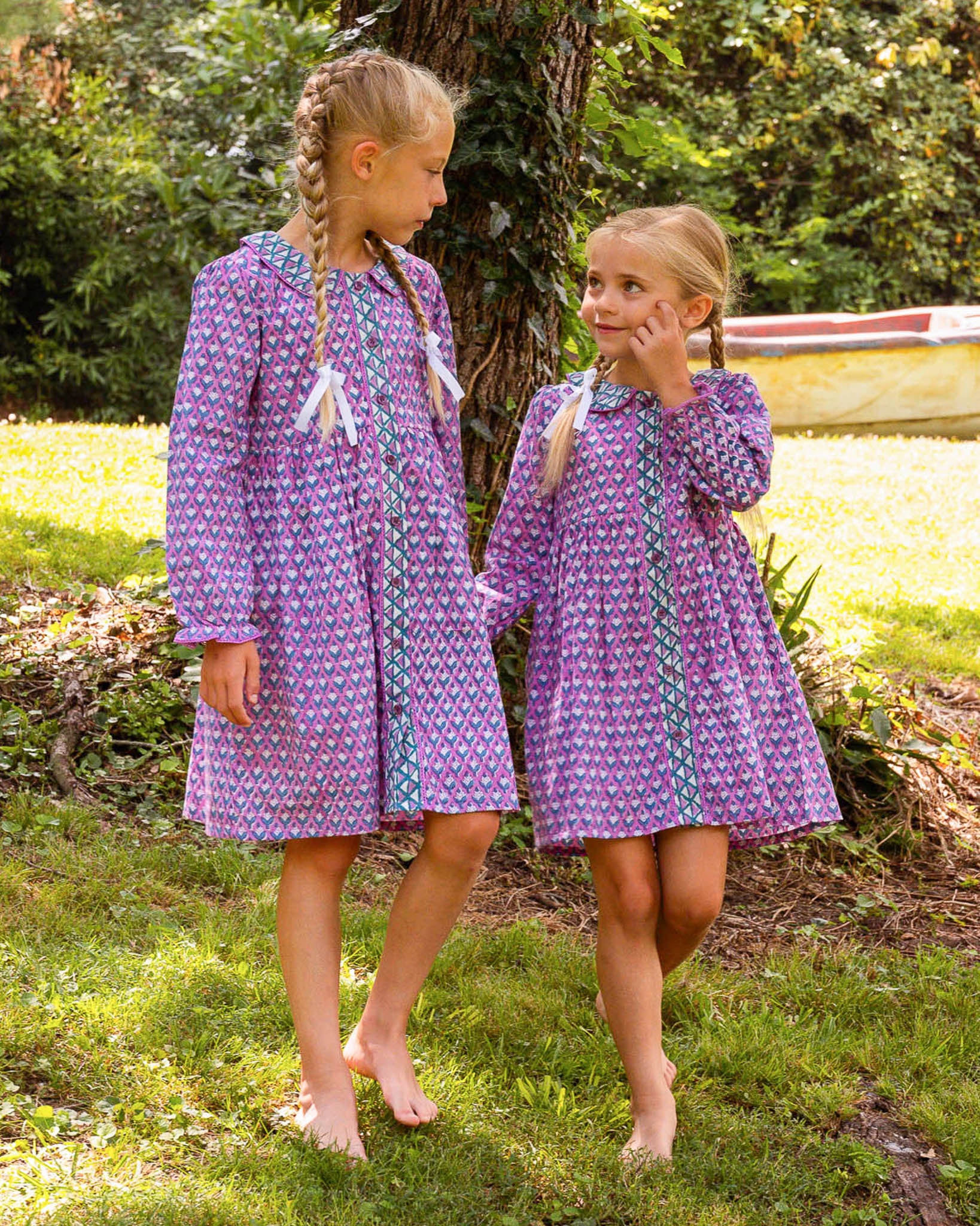 This dress is hand block printed in Jaipur on 100% poplin cotton fabric. We love the lightweight fabric for fall. It's super soft and perfect to dress up or down. Makes a great transitional piece.