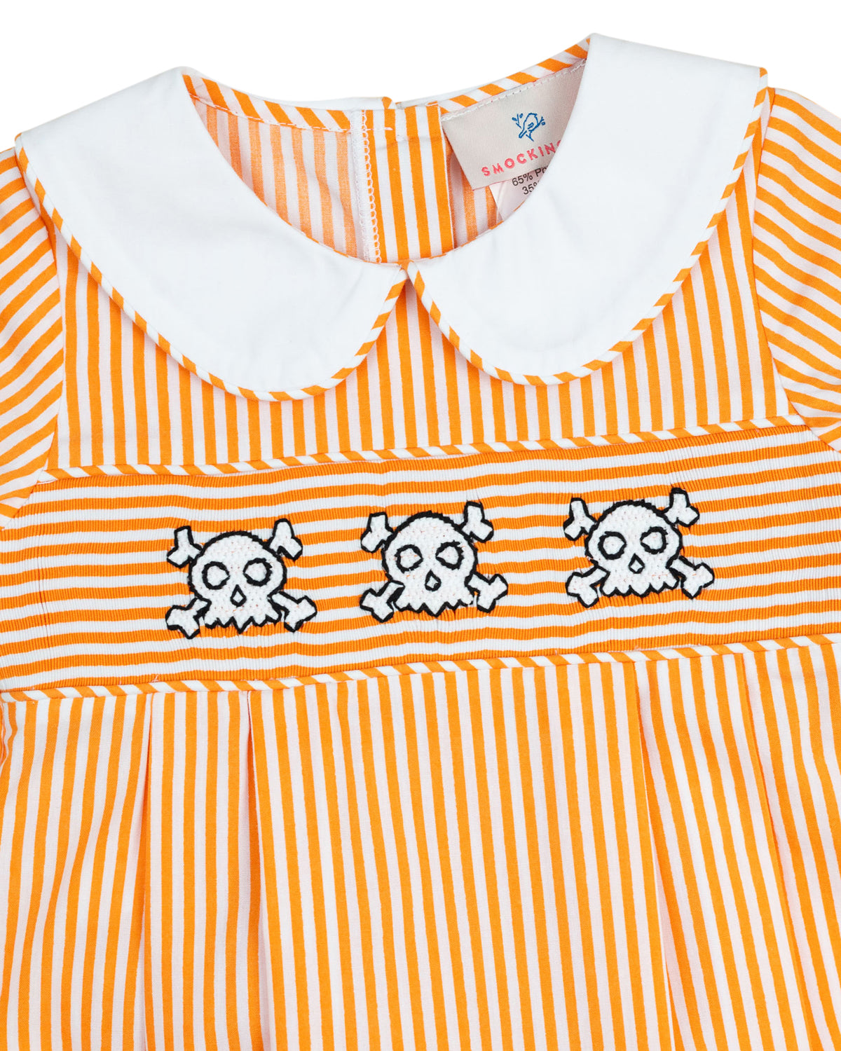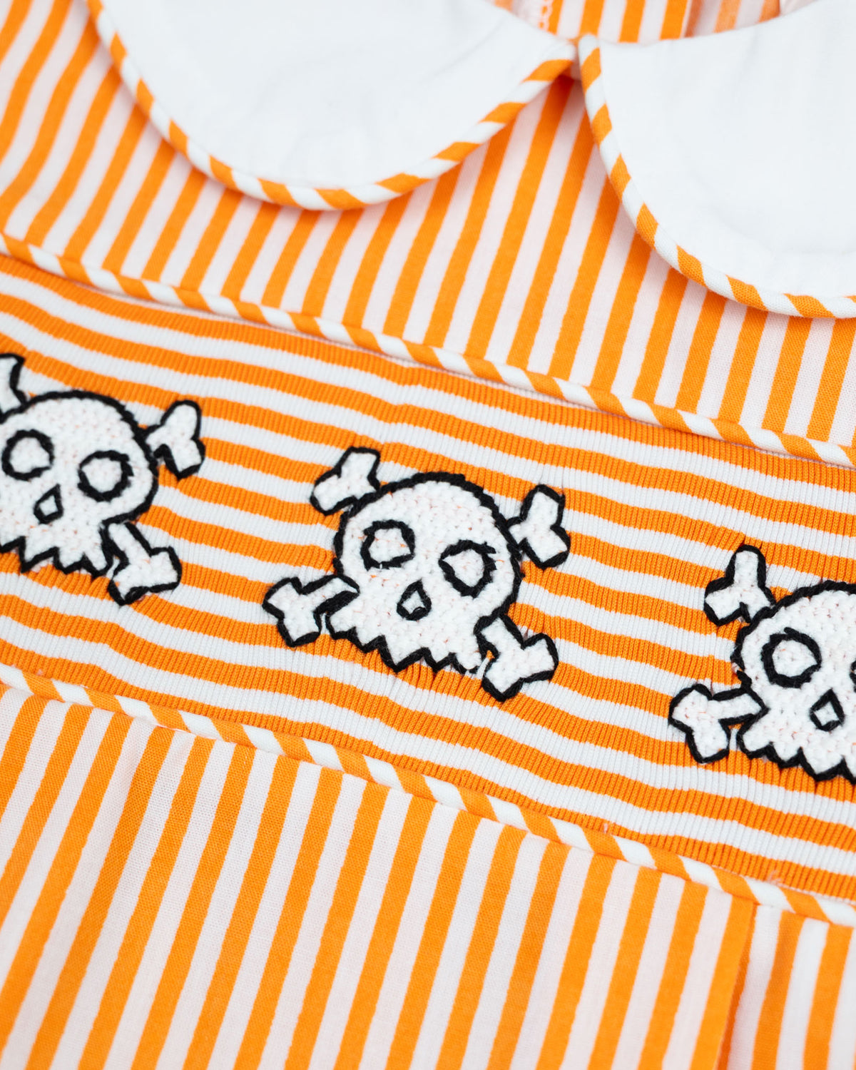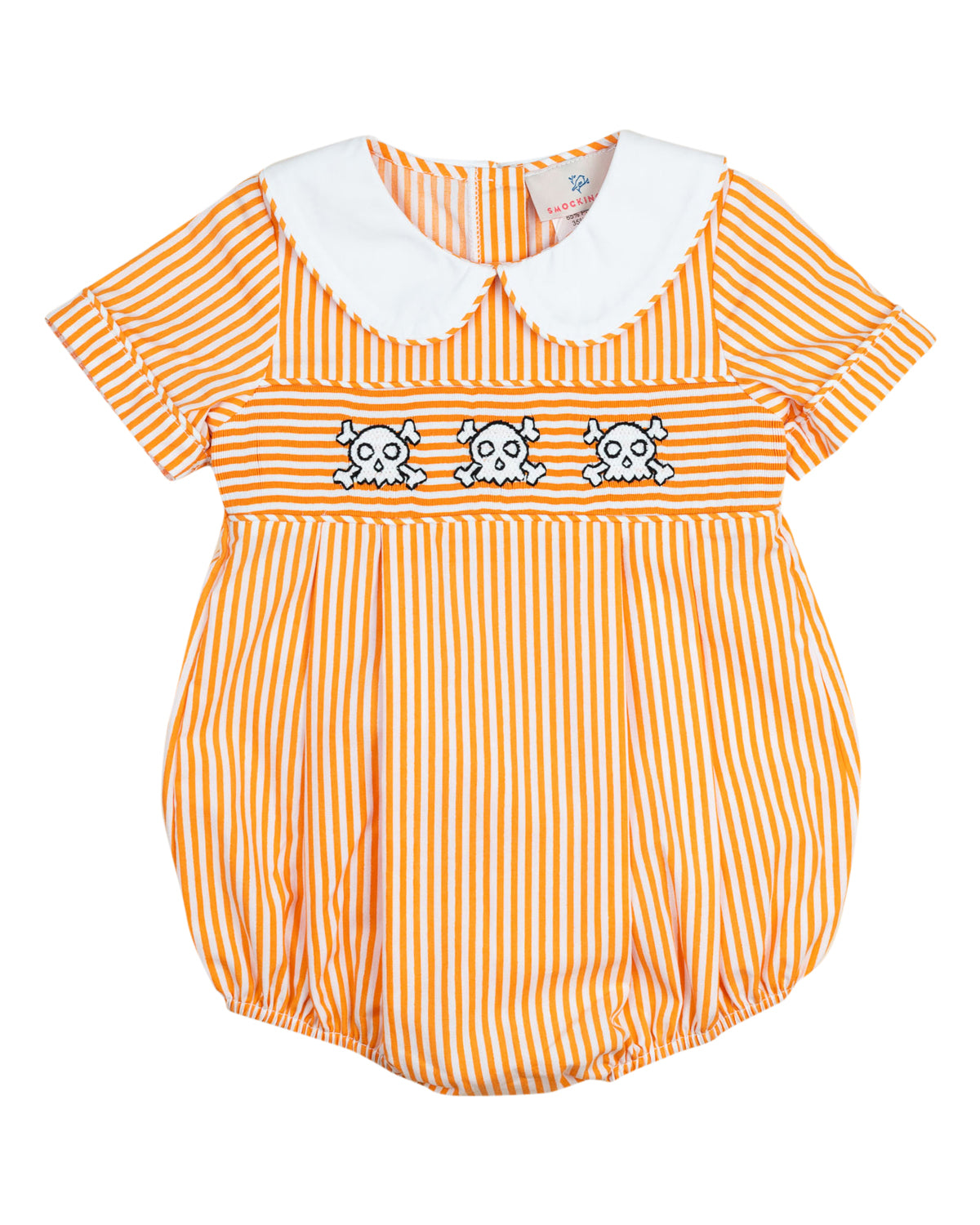 Let your little one join the Halloween fun in our Skull and Bones Smocked Boy Bubble. With playful smocking, comfy cotton fabric, and classic baby boy styling, it’s the perfect pick for festive fall moments.