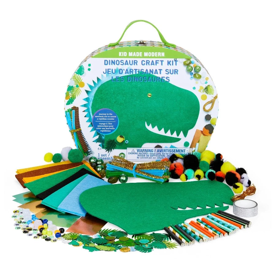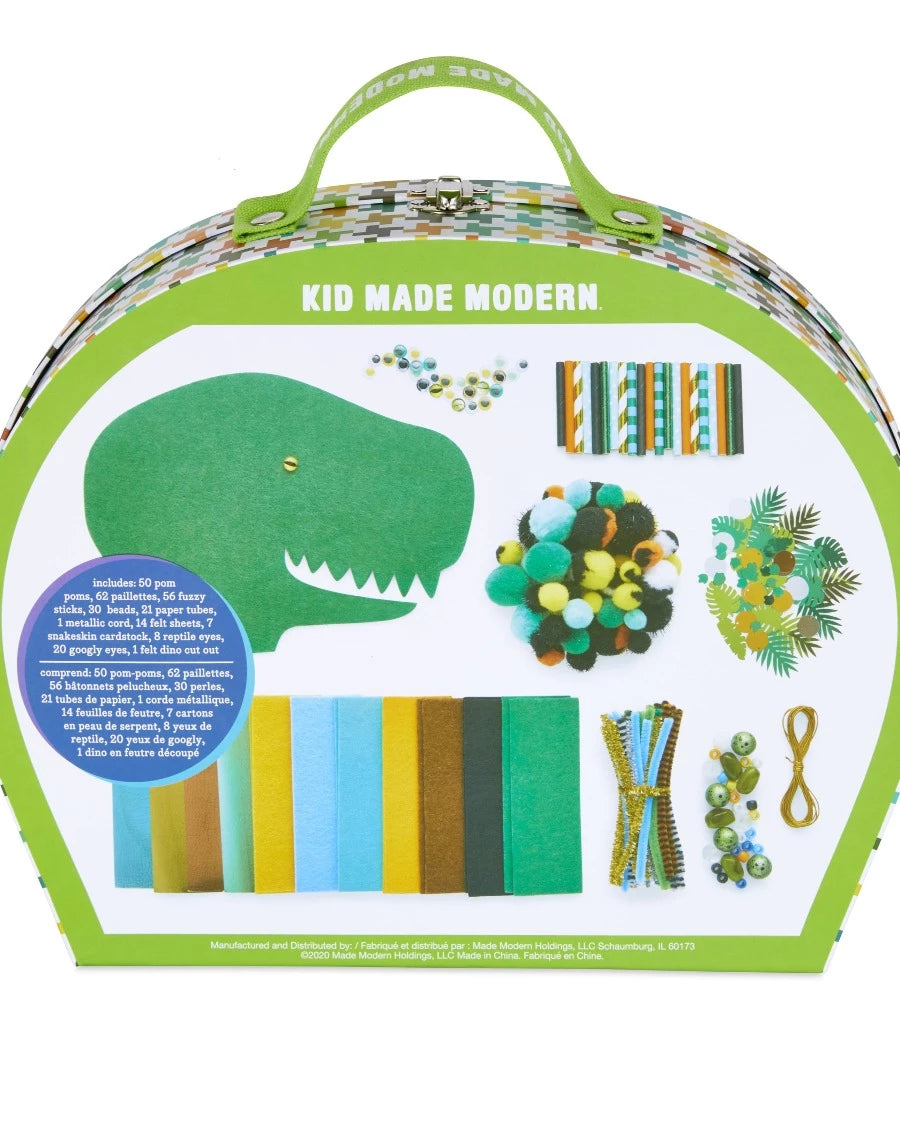 Includes: 50 pom poms, 62 pailletes, 56 fuzzy sticks, 30 beads, 21 paper tubes, 1 metallic cord, 14 felt sheets, 7 snakeskin cardstock, 8 reptile eyes, 20 googly eyes, 1 felt dino cut out.