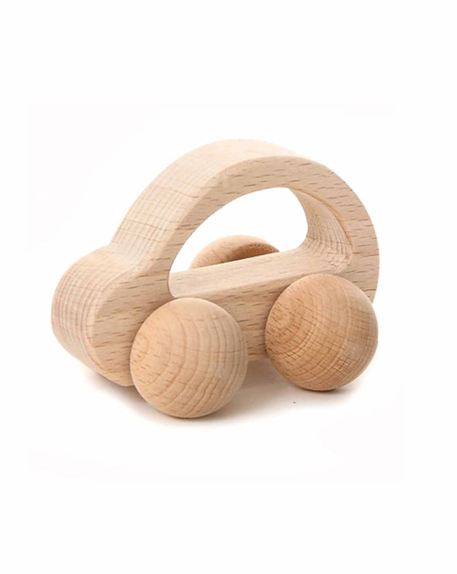 This natural wooden rattle is a classic toy for any baby. Also makes a great teether and baby gift! Choose between the classic, car, or bunny shapes.