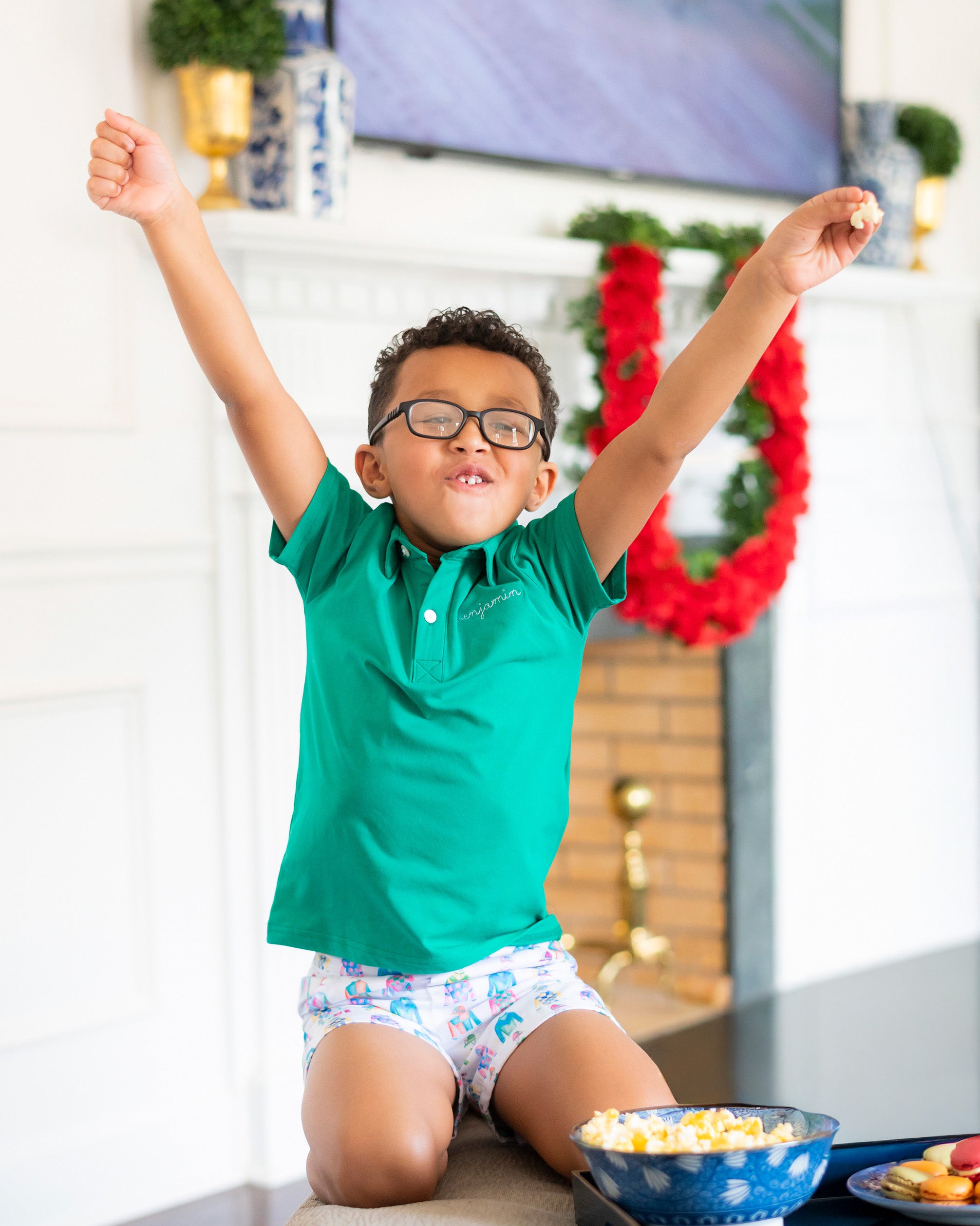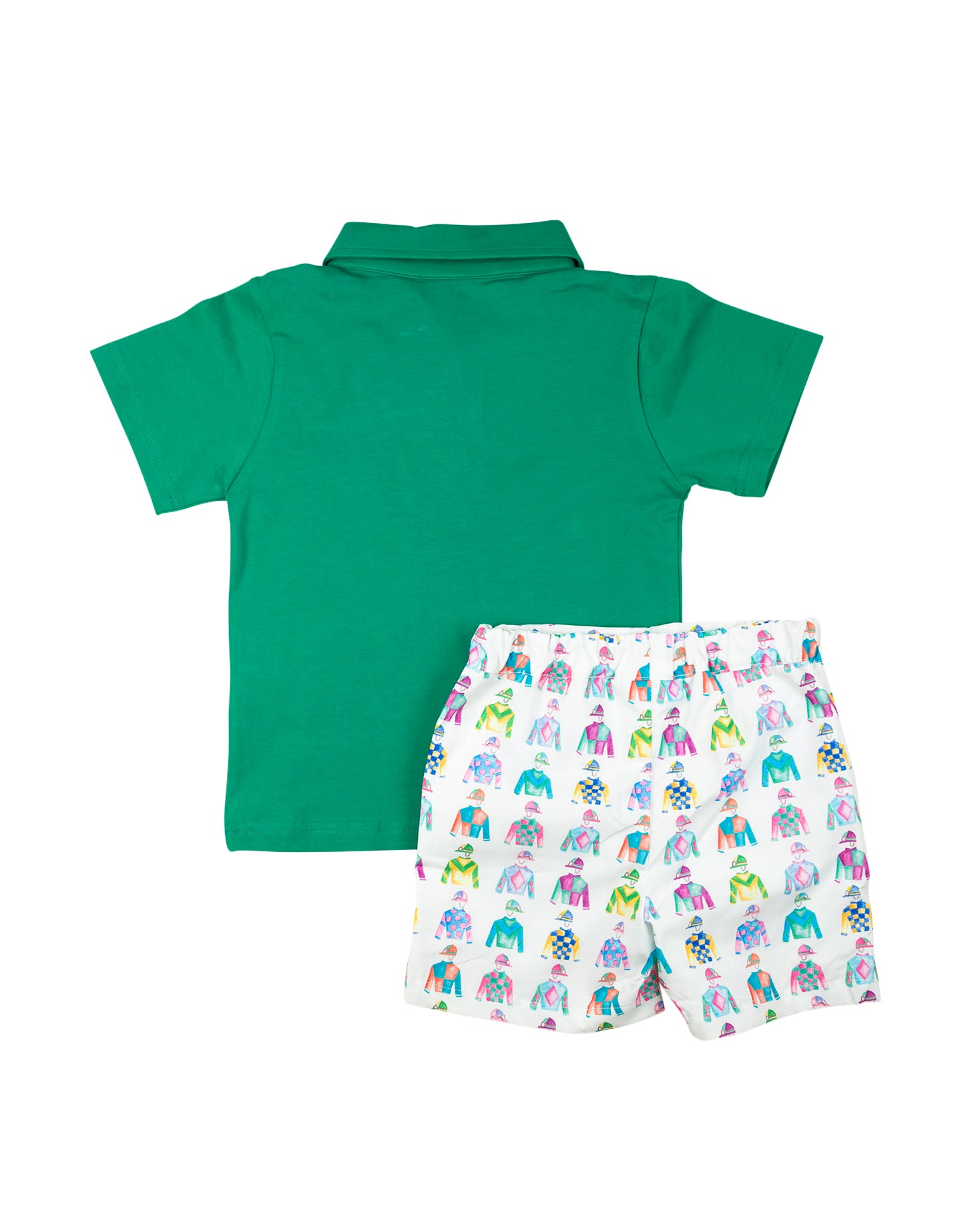 Let your child race into comfort with the Jockey Silks Shorts Set! Featuring a stylish combination of jockey-inspired prints and a comfortable fit, this set is perfect for warm days filled with outdoor fun. Whether they’re exploring the playground or enjoying a day of play, this set is a must-have for any young horse lover. These colorful shorts have an elastic waist. Add a personal touch with a monogram or name in vintage cursive on the left chest.