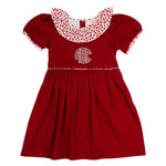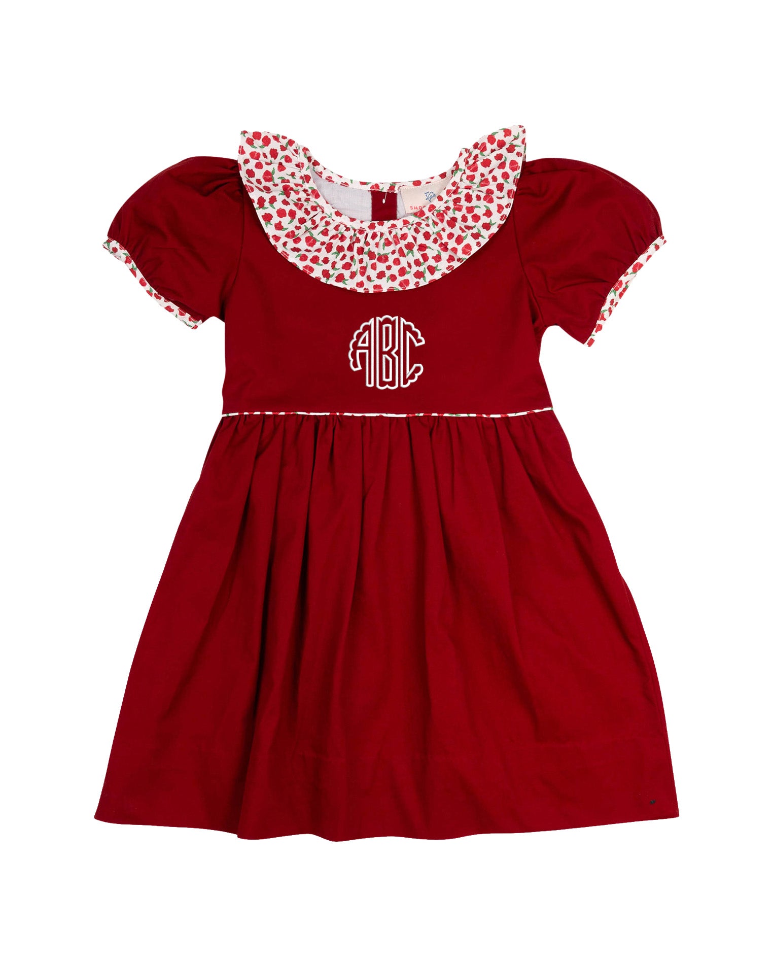 Elevate your little ones Valentine's wardrobe with this Red Floral Ruffle Collar Dress. Dress features short puff sleeves, a sash in back, and a floral ruffle collar. Add a name or monogram on the chest for a personal touch.