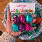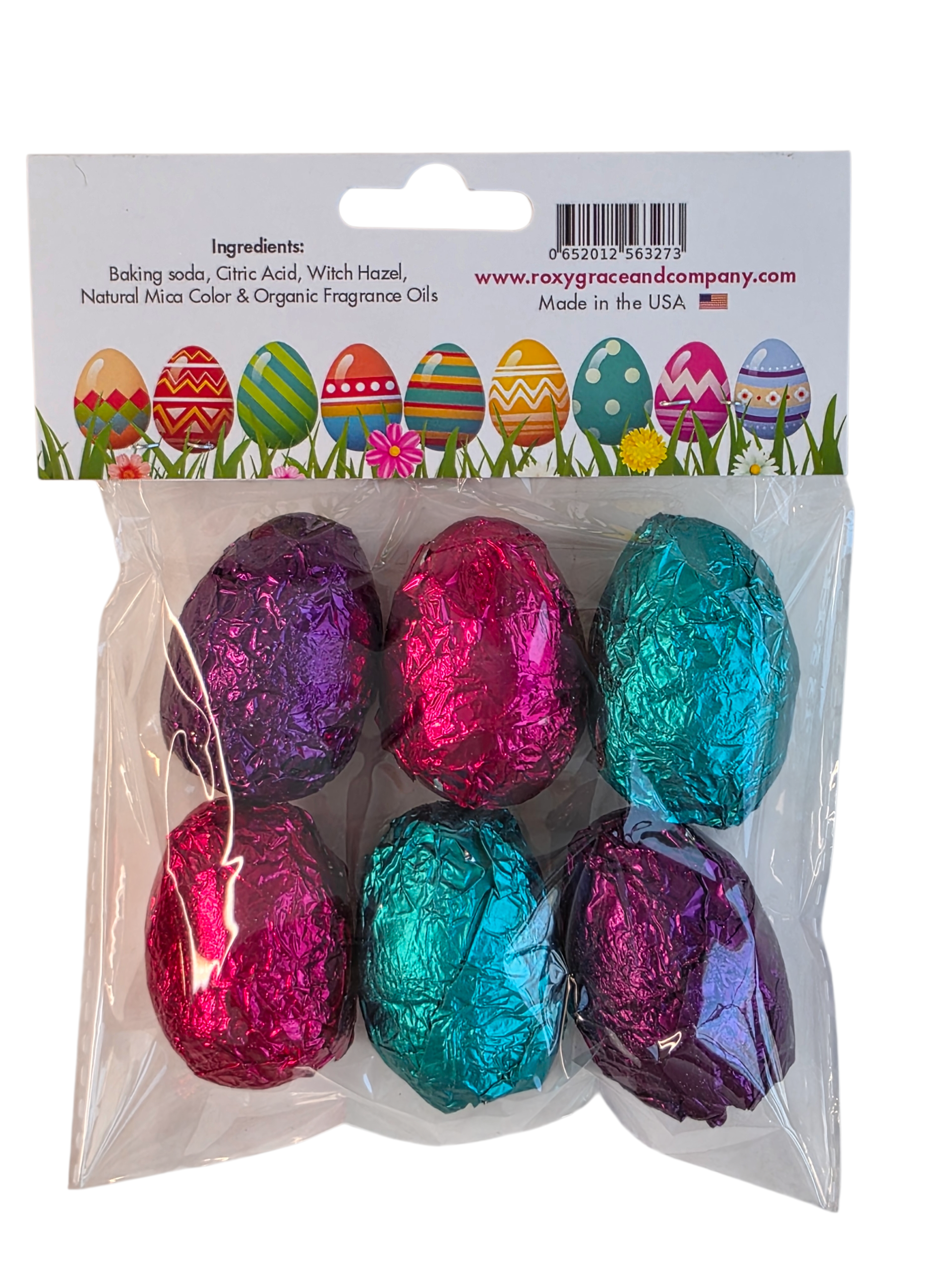 There’s only one thing better than Easter egg cream filled confections...Roxy Grace’s own Bath Bomb Easter Egg Mini’s! This busy Easter season nourish your skin in a tub filled with our Easter Egg bath bombs. Your skin will thank you for the pampering. We use only high grade organic fragrance oils to rejuvenate and restore your skin. Each Mini Egg comes wrapped in colored metallic foil assembled in a bag with a bag topper for easy gifting.