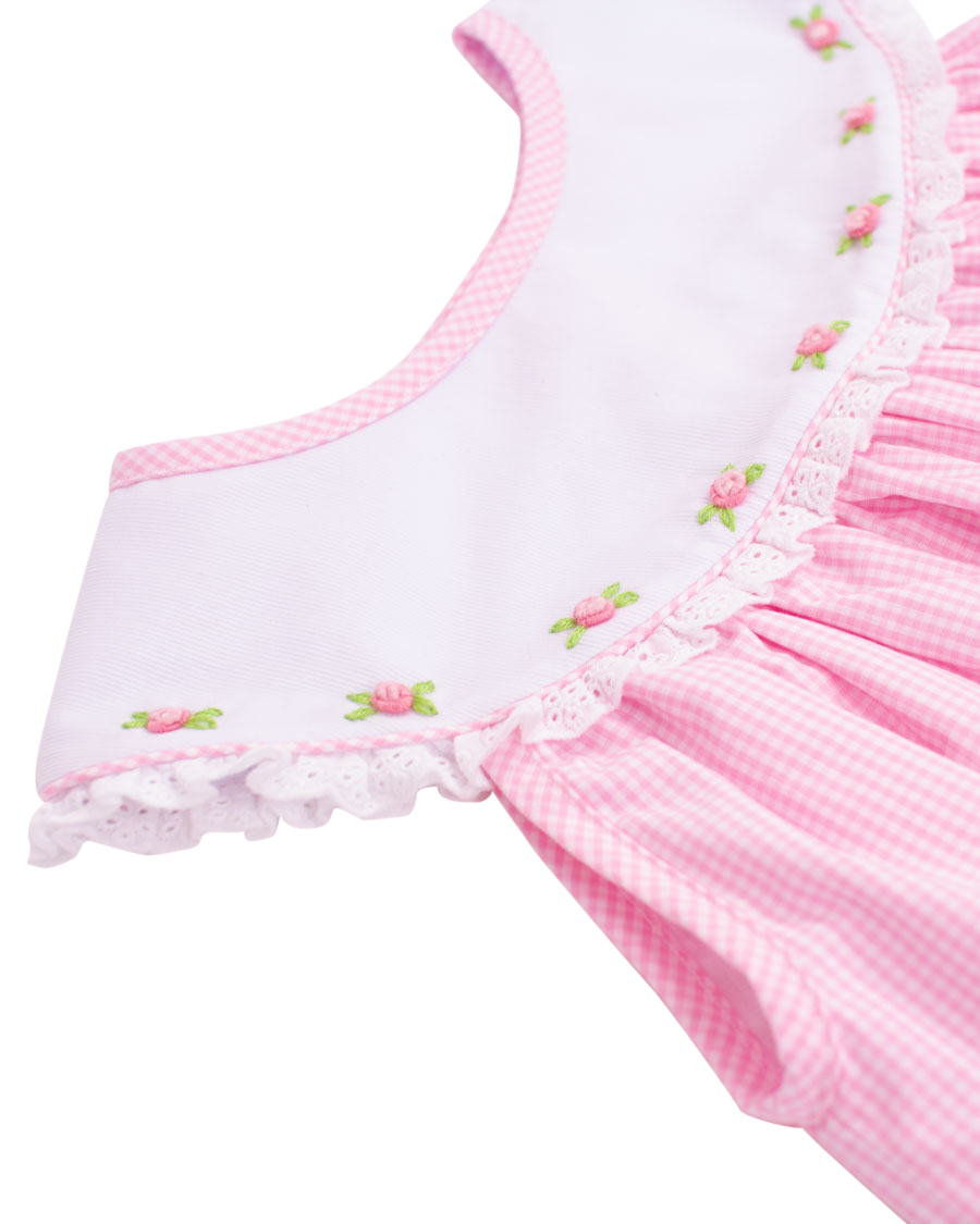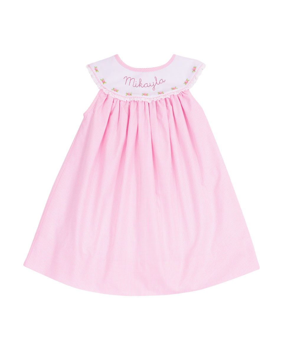 Rosebud Yoke Collar Pink Gingham Dress