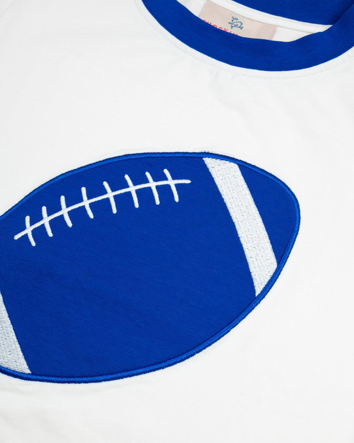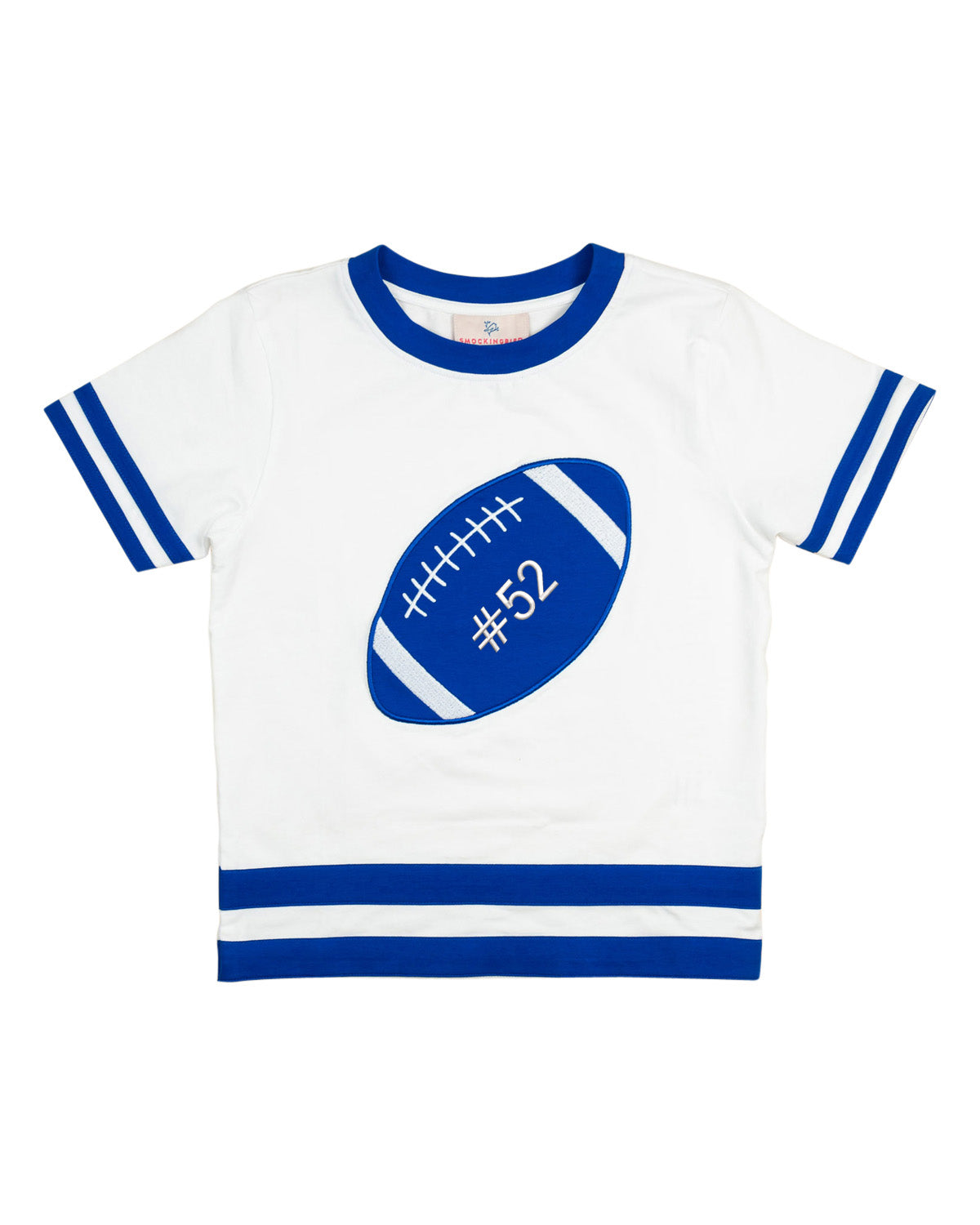 Celebrate touchdowns in royal style! This Royal Blue Football Appliqué Shirt is sporty, spirited, and perfect for your little football lover.