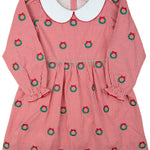 Celebrate the magic of the season with our Christmas Wreaths Embroidered Dress! This charming holiday dress features intricate embroidered wreaths, a classic peter pan collar, and delicate ruffle details on the sleeves. The classic silhouette adds timeless appeal, making it perfect for Christmas parties, family gatherings, and holiday photos.