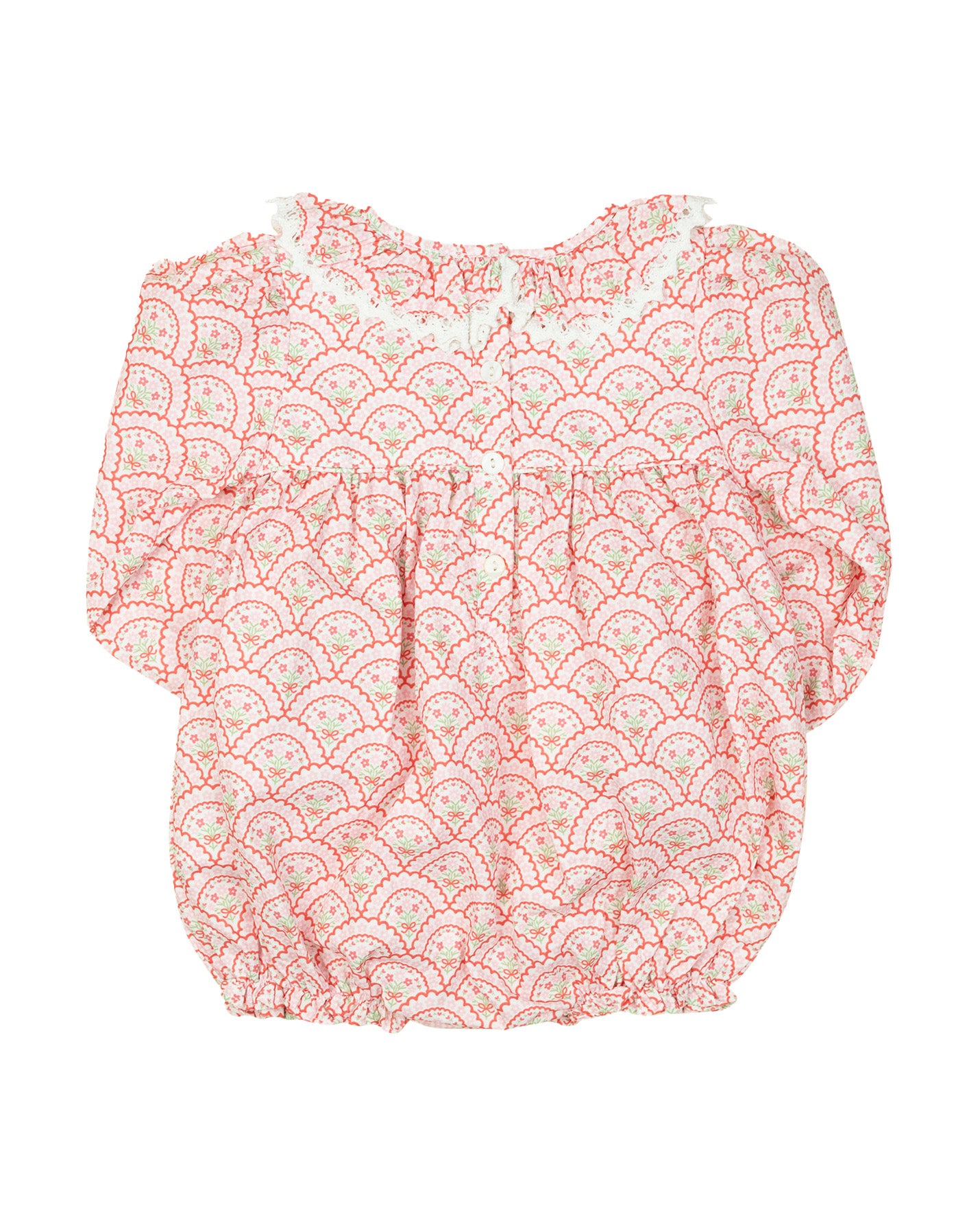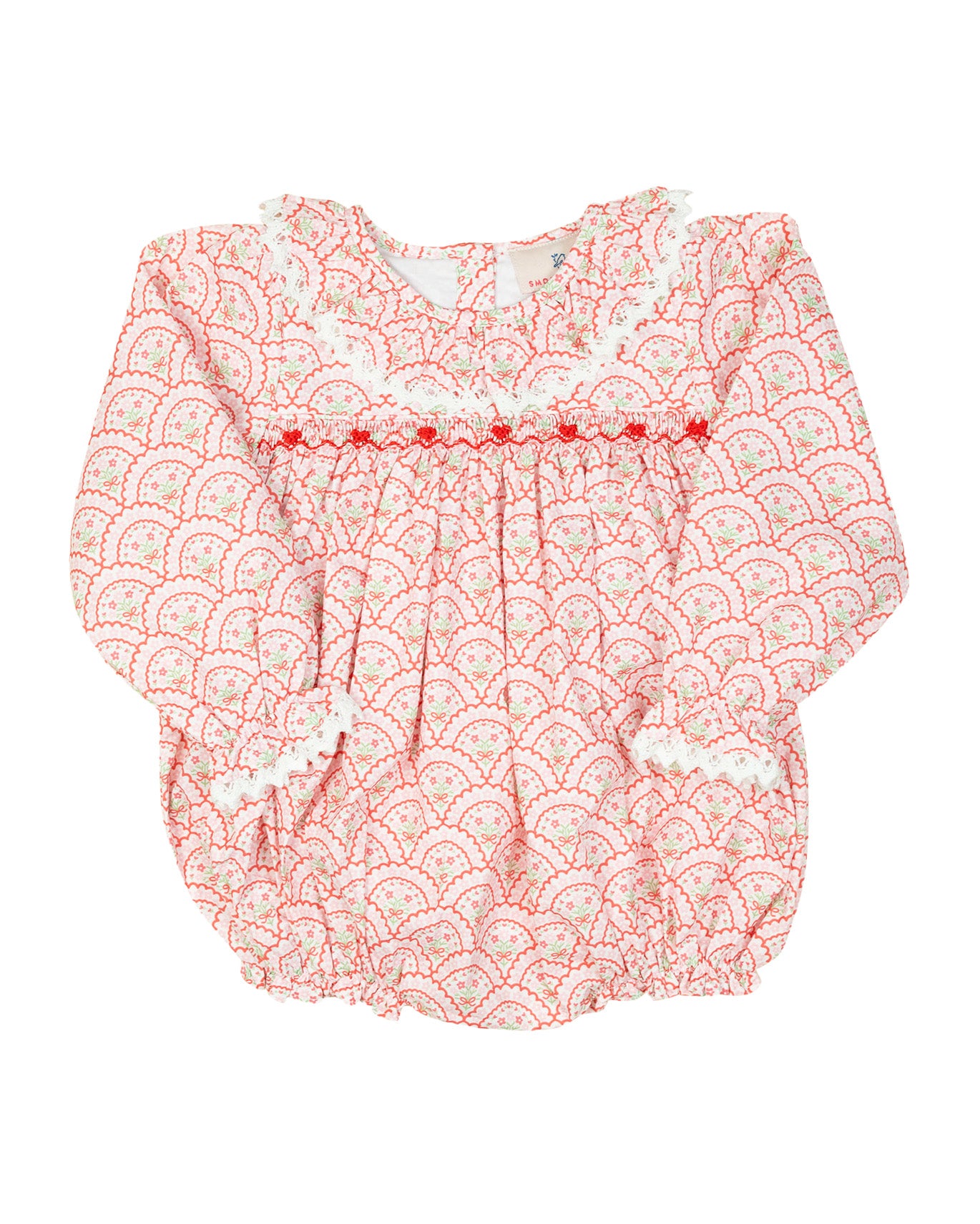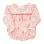 Dress your little love in pure sweetness with our Floral Valentines Scallop Print Bubble! Designed with dainty smocked detailing, sweet ruffles, and soft elastic leg openings, this bubble is both adorable and comfortable. A perfect one-piece outfit for Valentine's festivities and everyday charm!