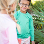 Our Rash Guard Long Sleeve in Parakeet Green provides excellent protection and warmth. This water wear is made of compact knitted fabric that guards your child from the sun's rays, the cold, and scratching. Add a personal touch with a name or monogram. UPF50+