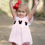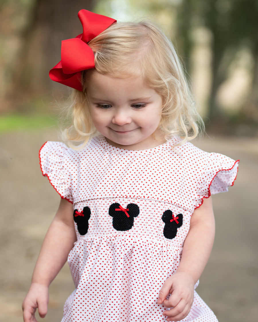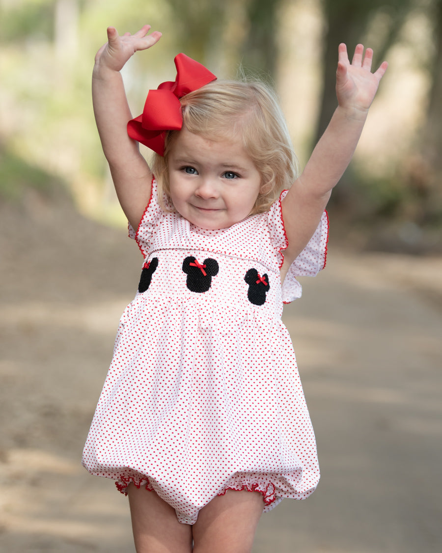 Mouse with Red Bow Smocked Polka Dot Knit Bubble