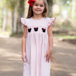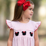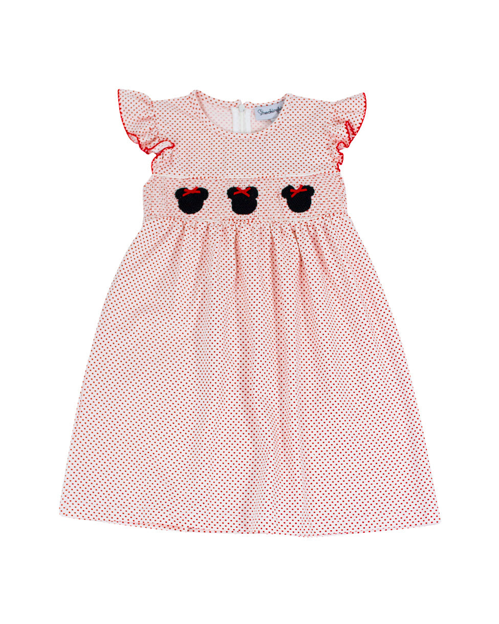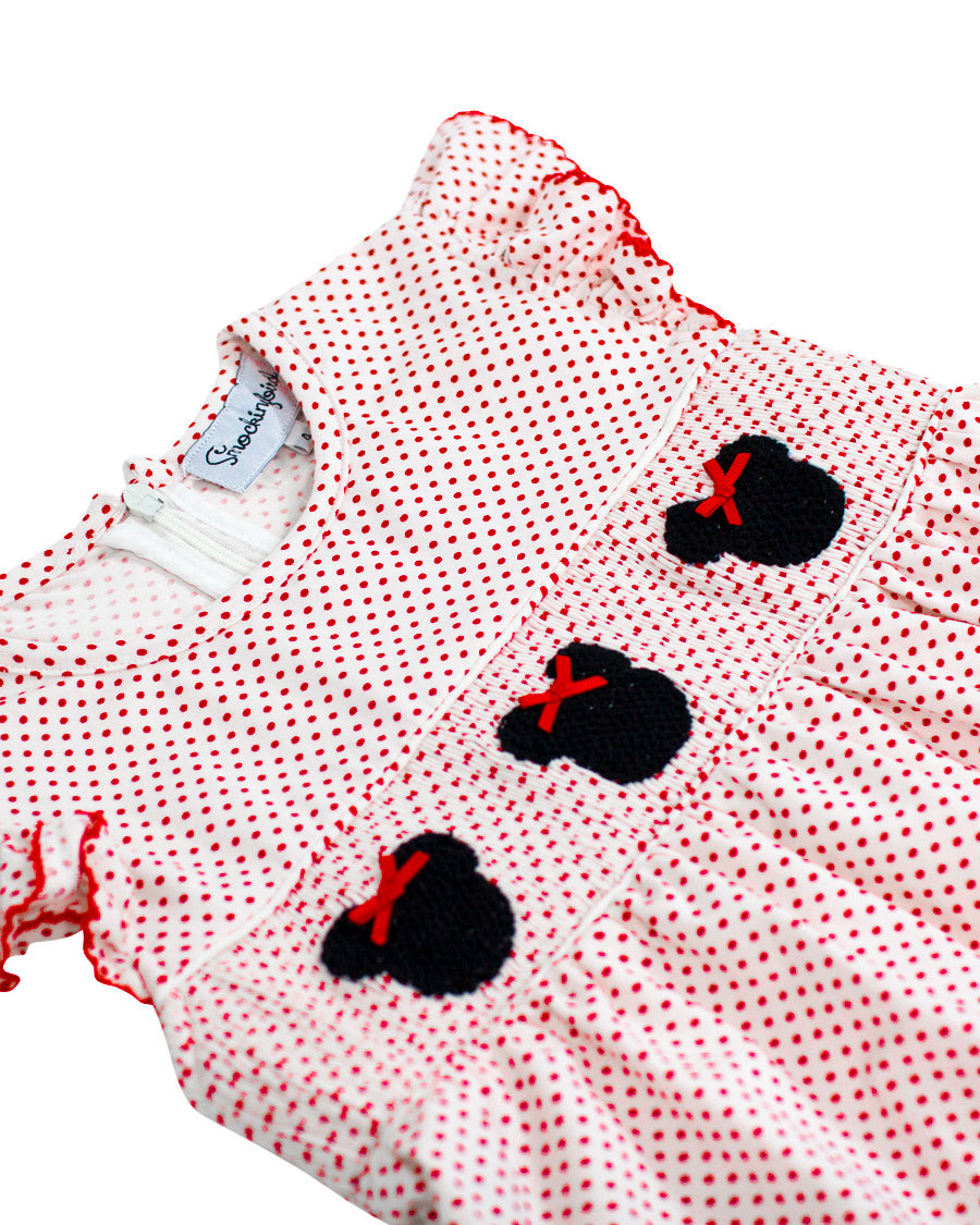 Mouse With Red Bow Smocked Polka Dot Knit Dress