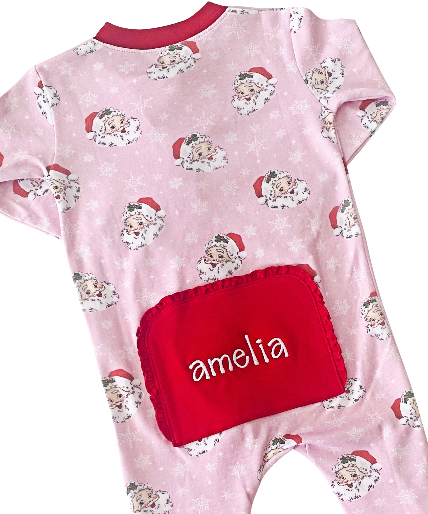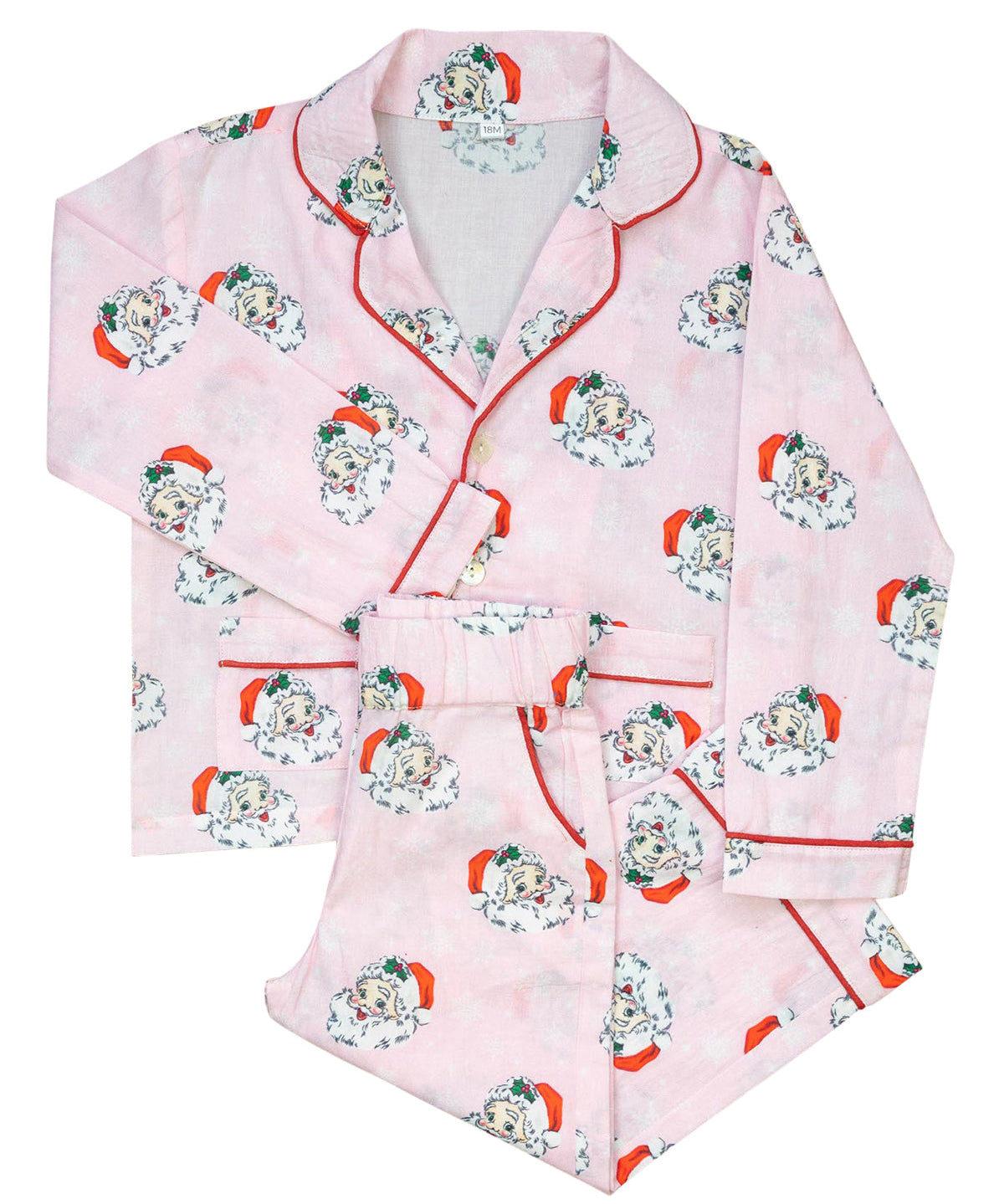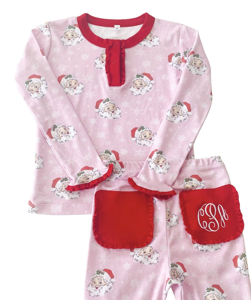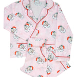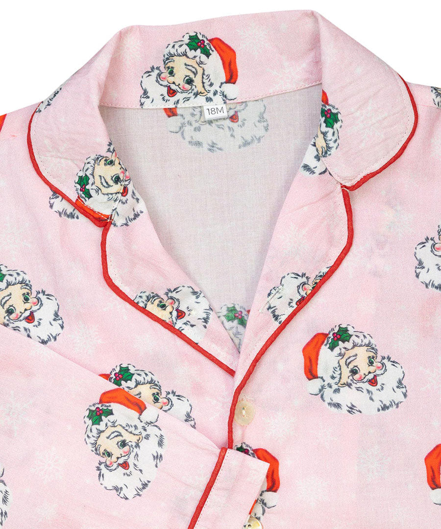 Vintage Santa Pink Button Down Ladies Pajamas