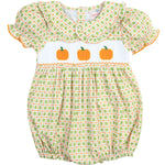 Pumpkin Smocked Plaid Girl Bubble