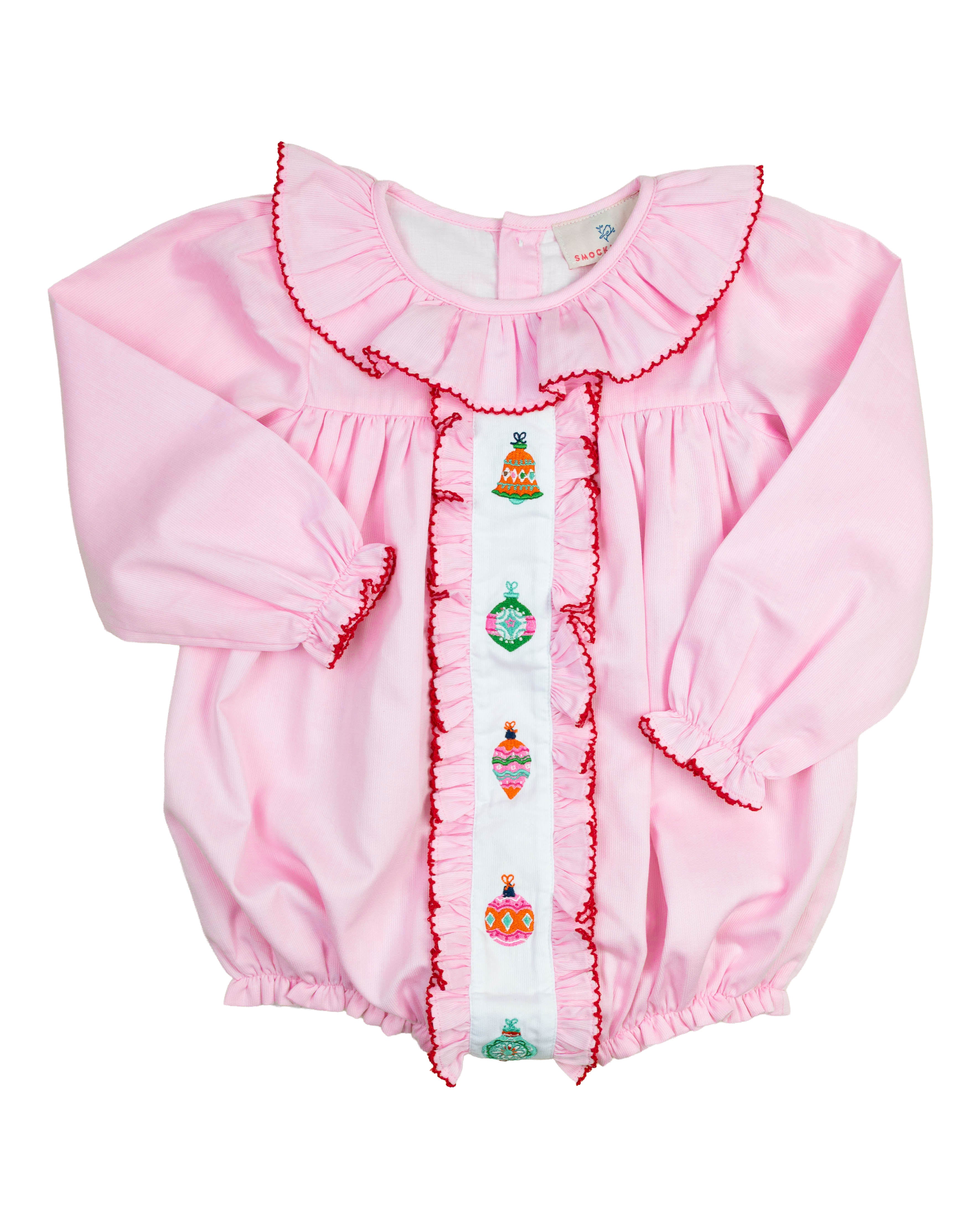 Dress your little one in timeless holiday charm with our Ornaments Embroidered Bishop Bubble. Crafted from soft fabric with exquisite embroidered ornaments down the front, it’s designed for comfort and easy wear with back buttons and snaps. Ideal for holiday parties and keepsake photos.